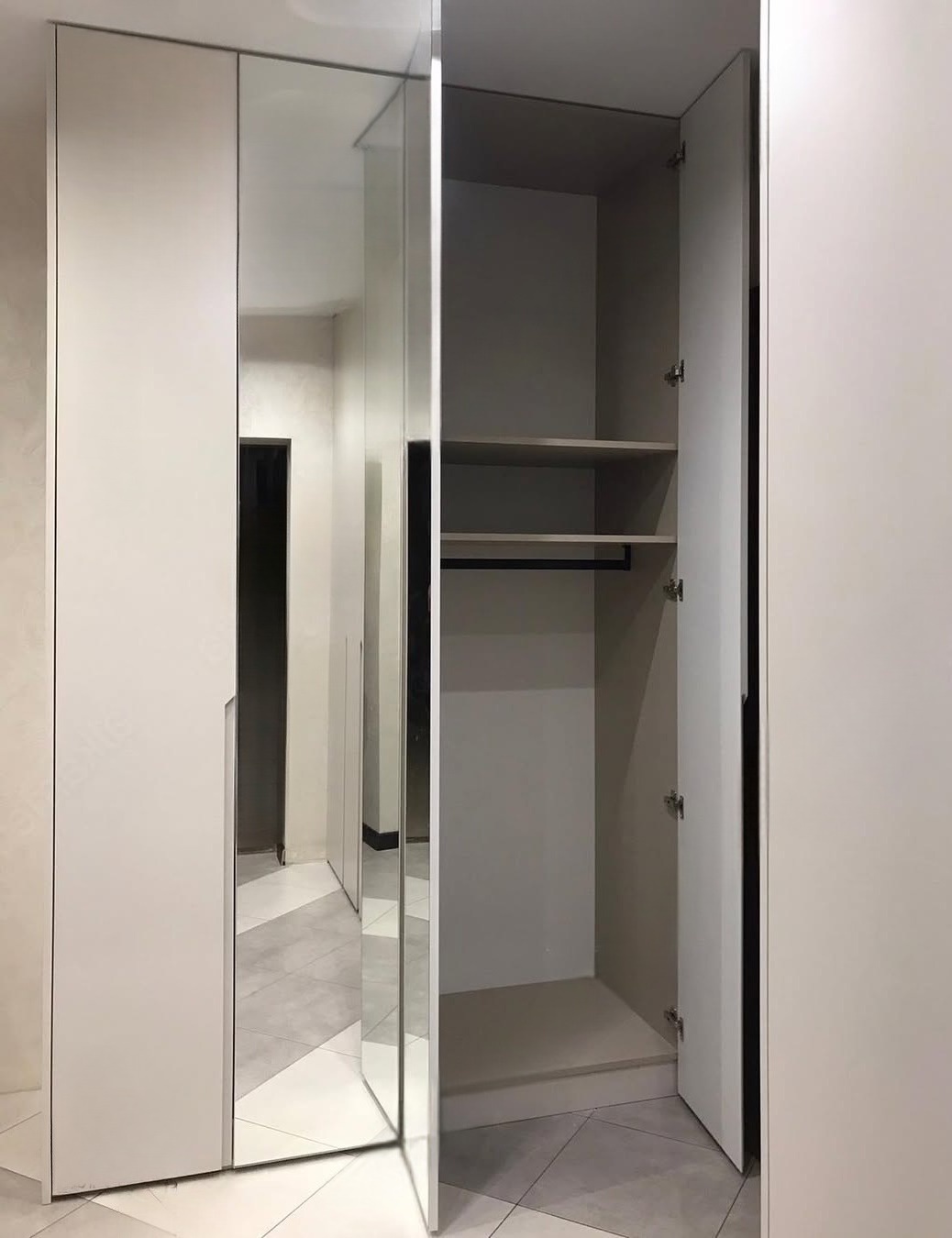 Угловой шкаф из МДФ с распашными зеркальными дверями «Модель 133»