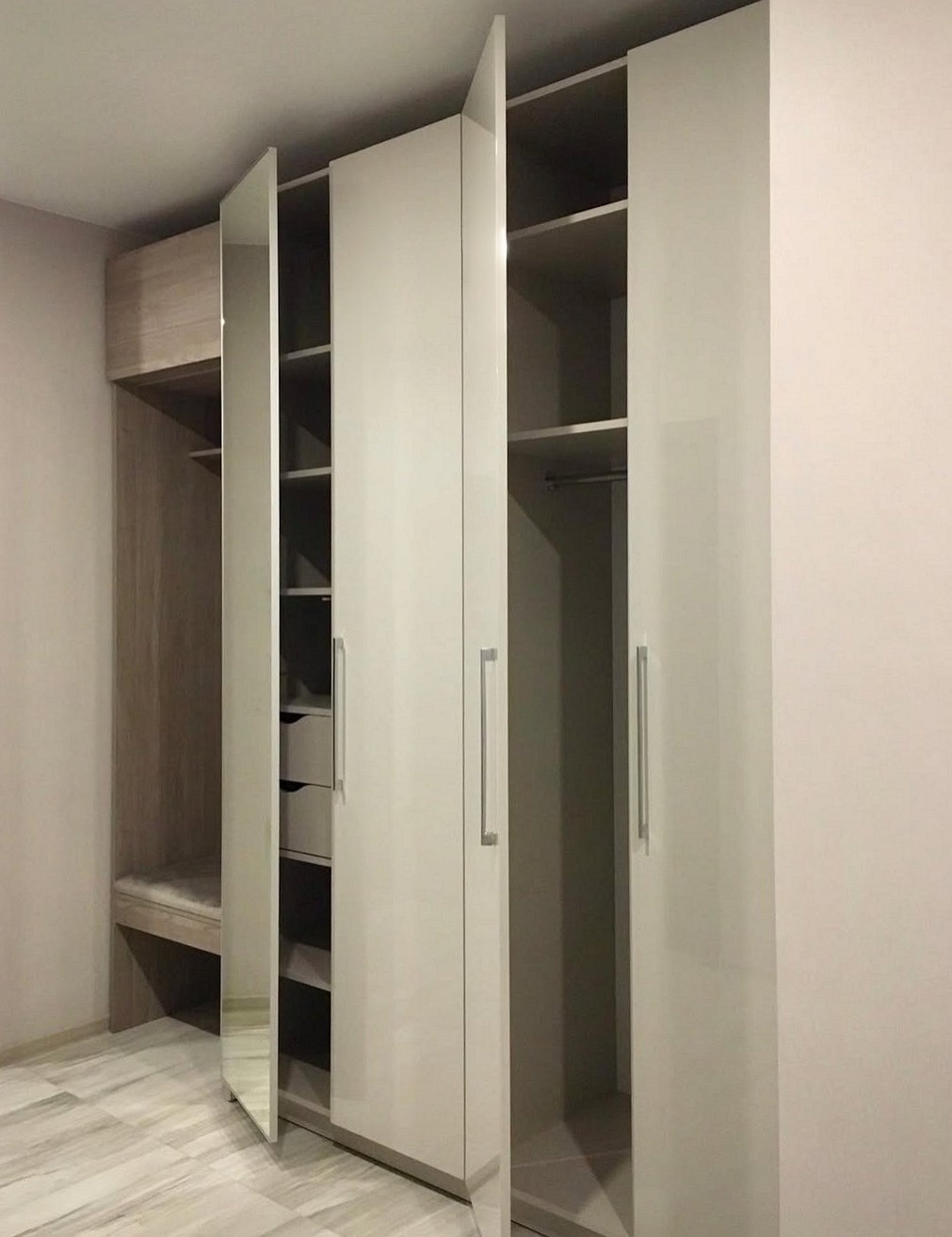Встроенная прихожая белого цвета с открытой нишей «Модель 569»