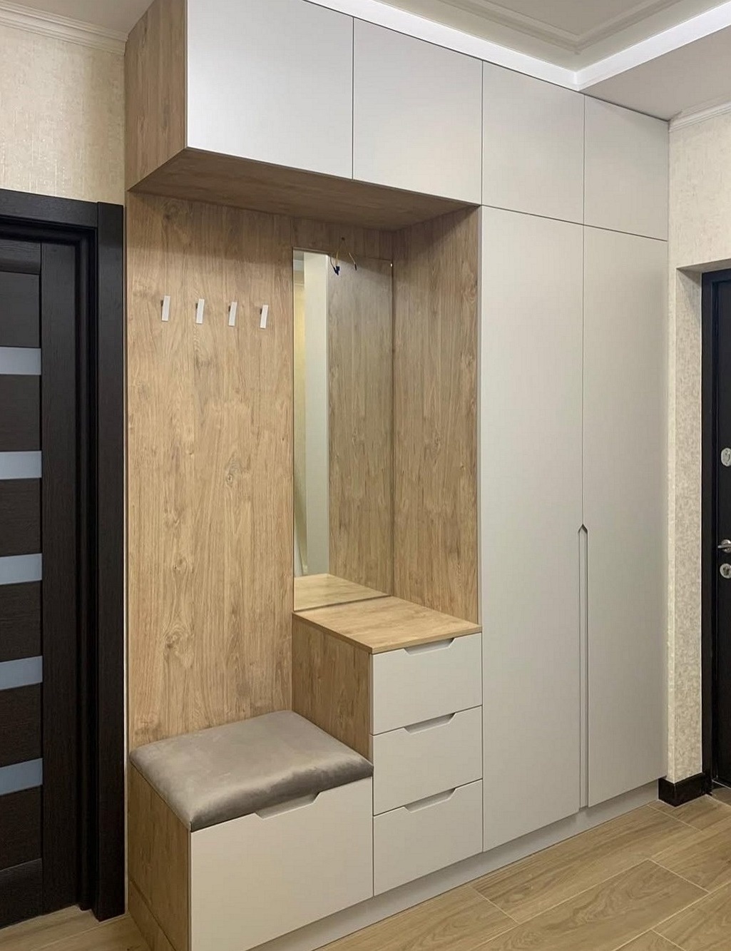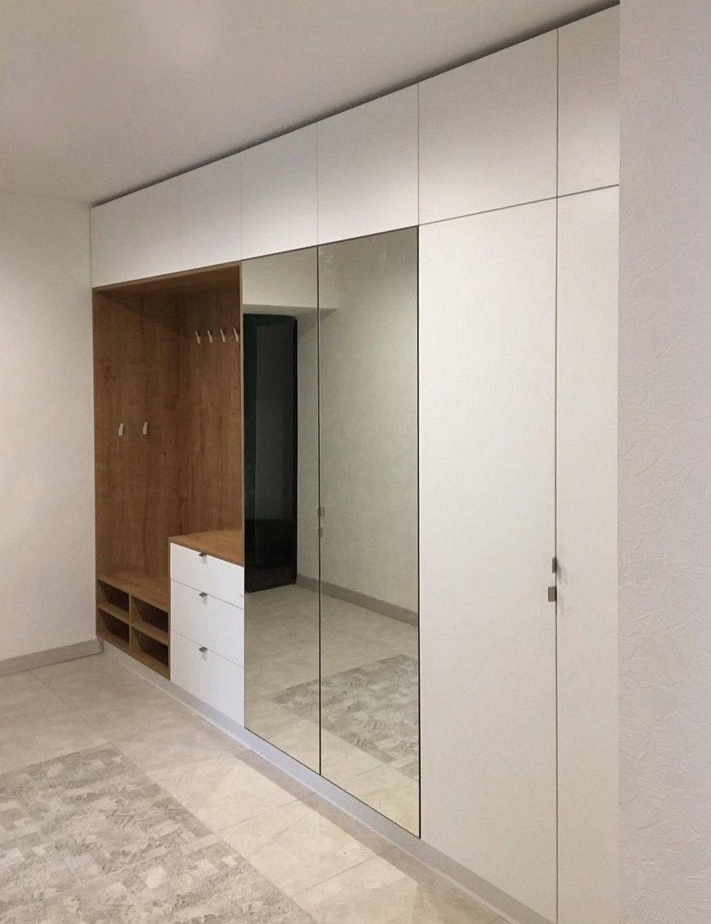 Встроенный шкаф из ЛДСП с зеркальными дверями в прихожую «Модель 622»