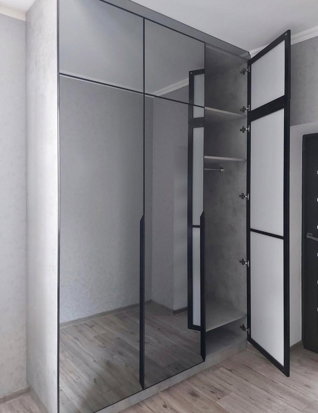 Угловой шкаф с тонированным зеркалом и черным профилем «Модель 590»