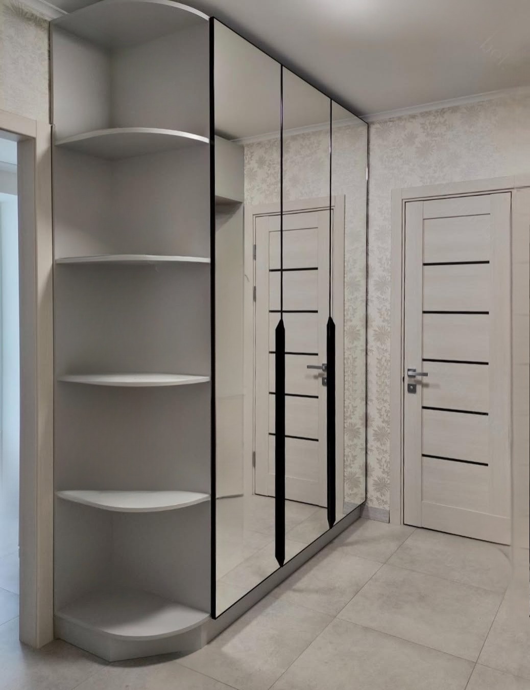 Высокий шкаф с зеркальными дверями и угловыми полками «Модель 644»
