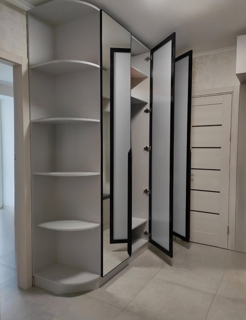 Встроенный угловой шкаф с зеркальными дверями и фрезеровкой «Модель 561»
