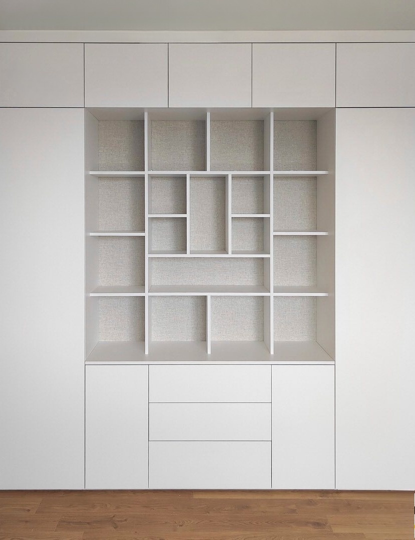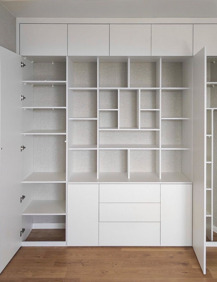Встроенный в нишу жалюзийный шкаф с открытыми полками «Модель 1316»