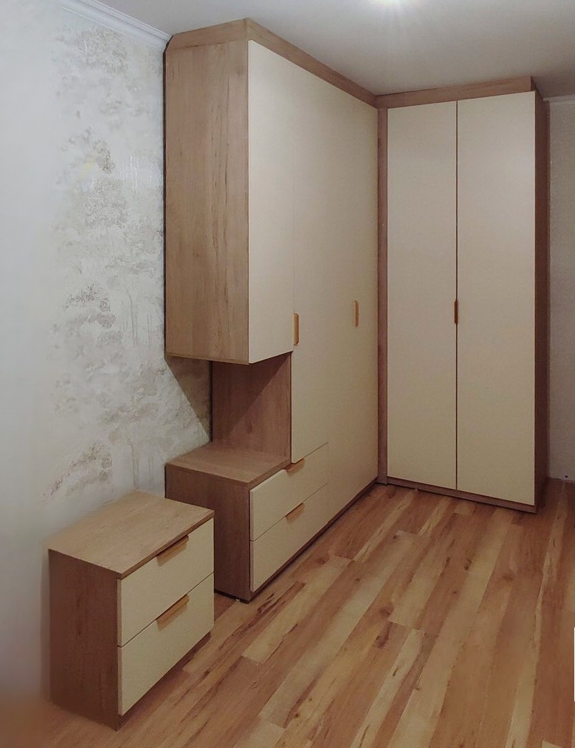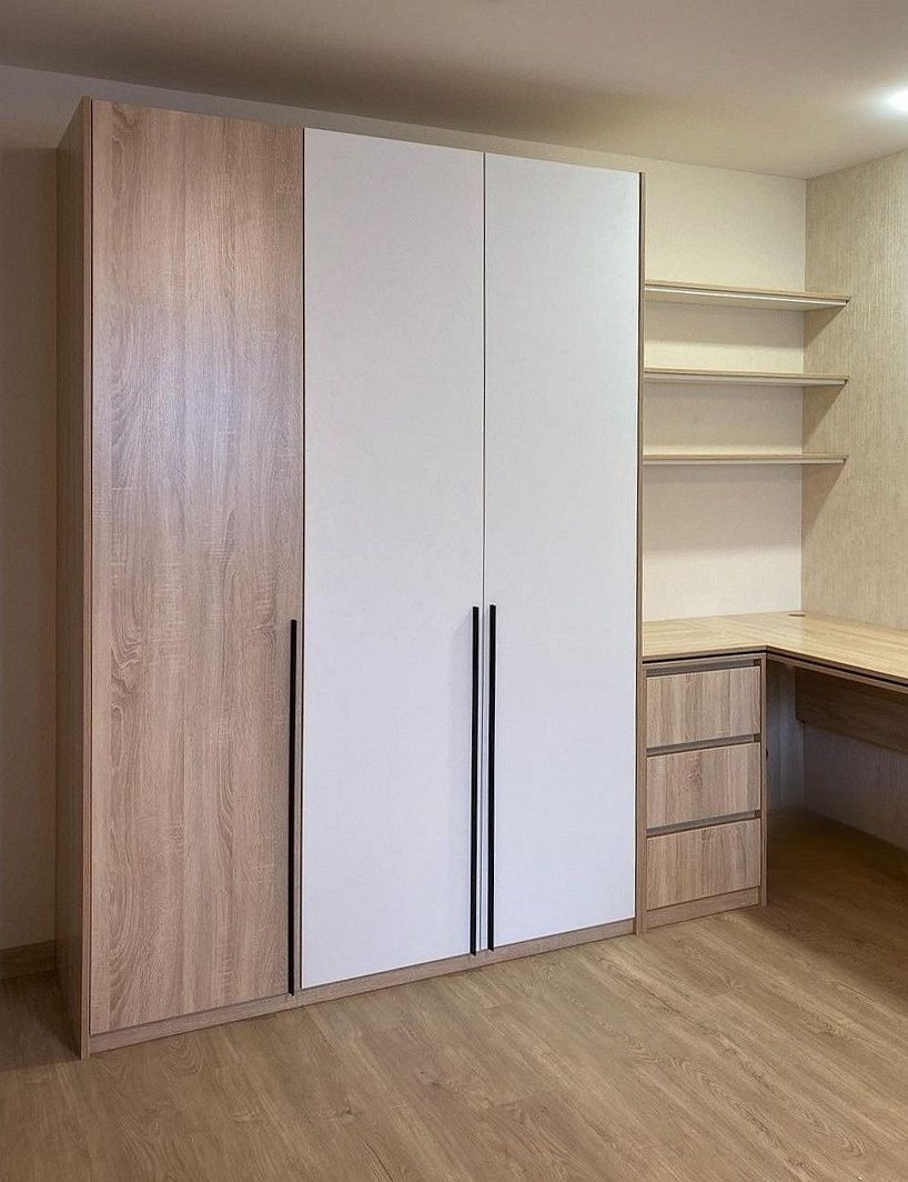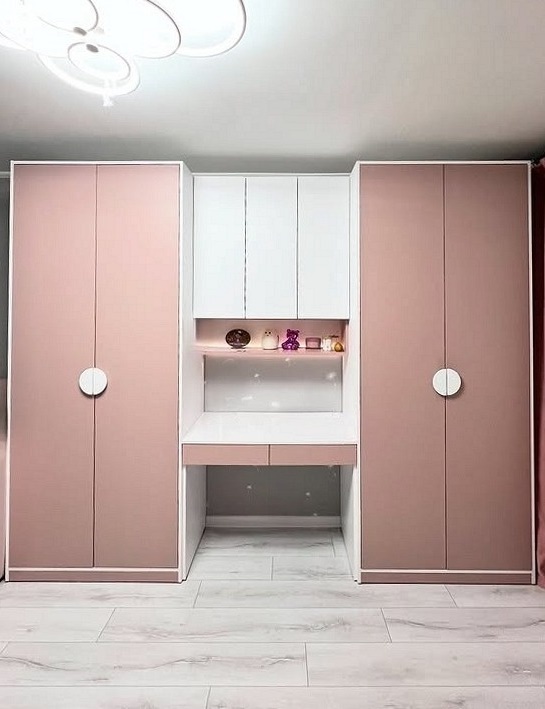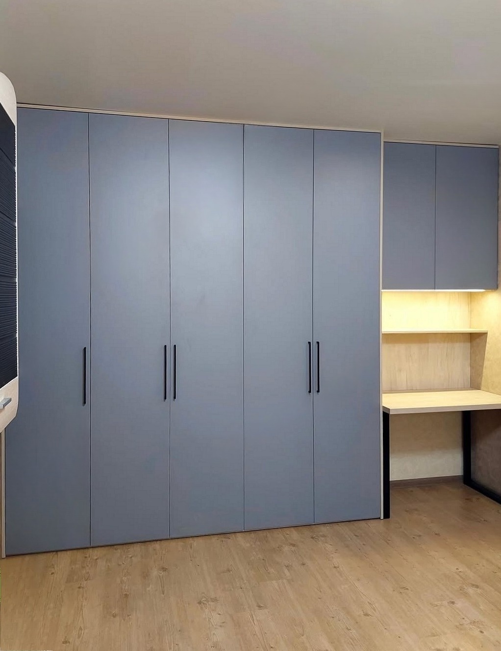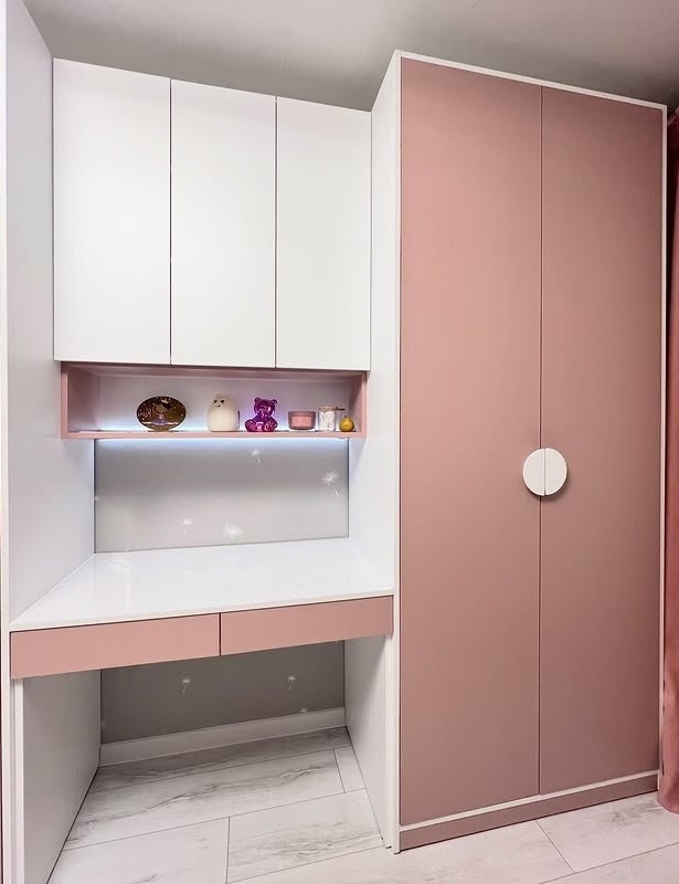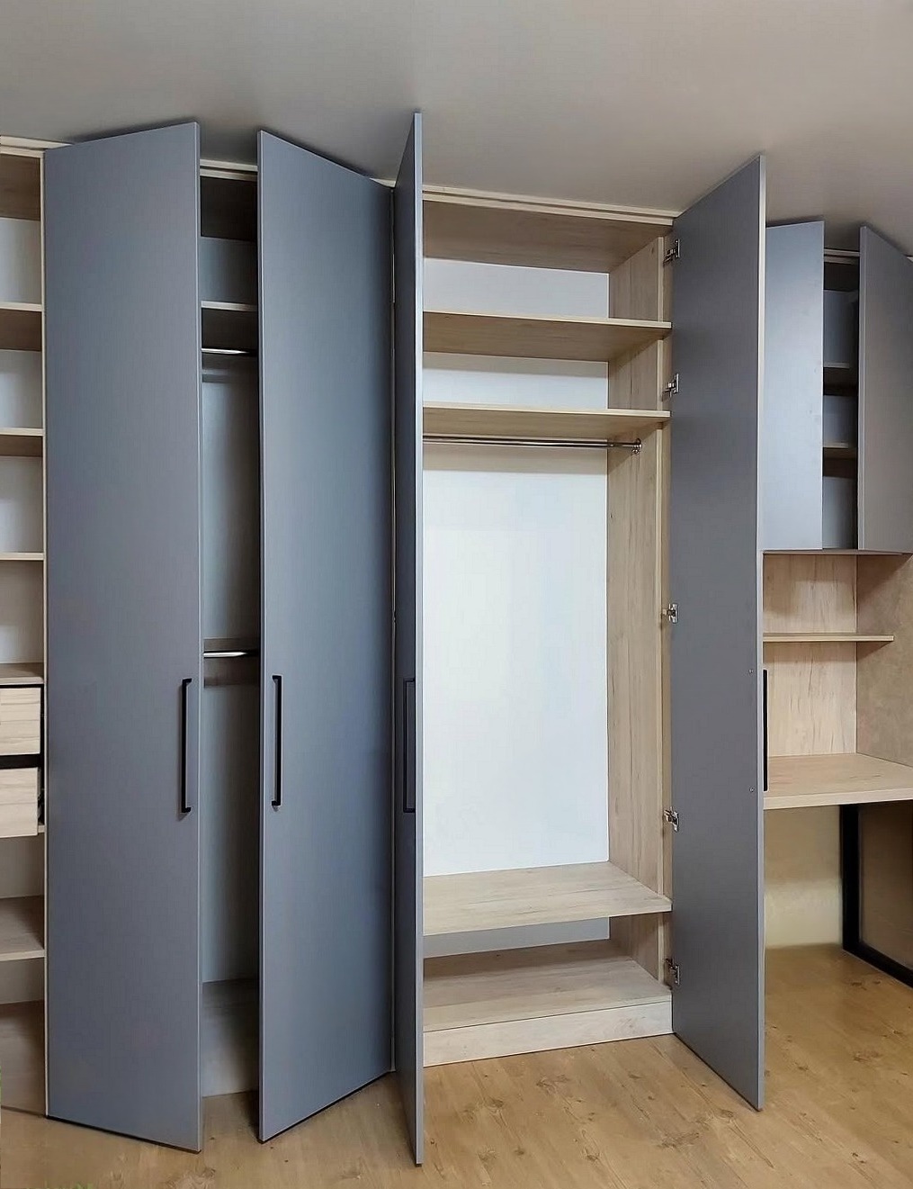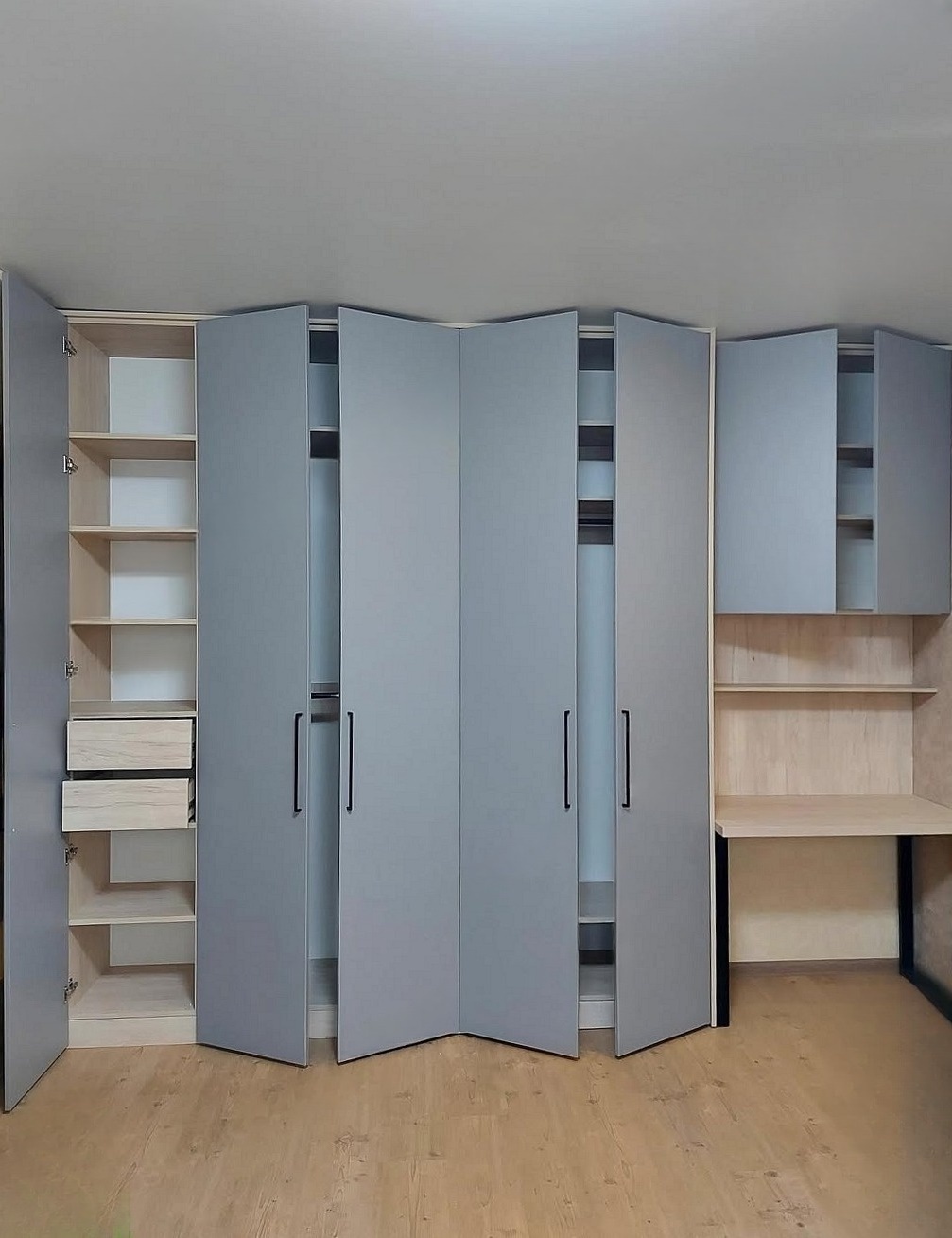 Двухцветный распашной шкаф с угловым столом на заказ «Модель 885»