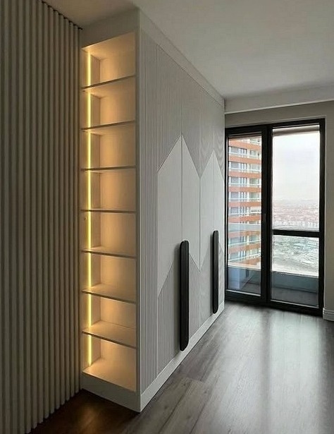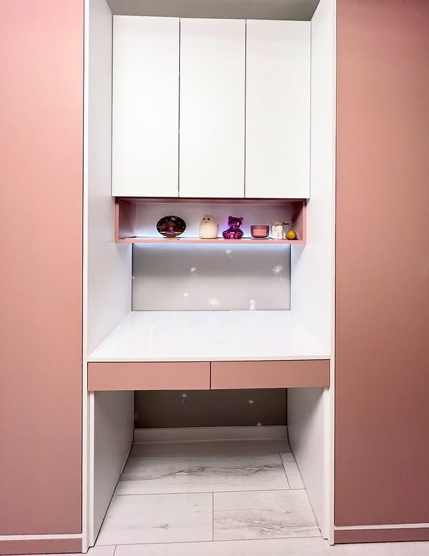 Встроенный шкаф под потолок с подсветкой и столом «Модель 902»
