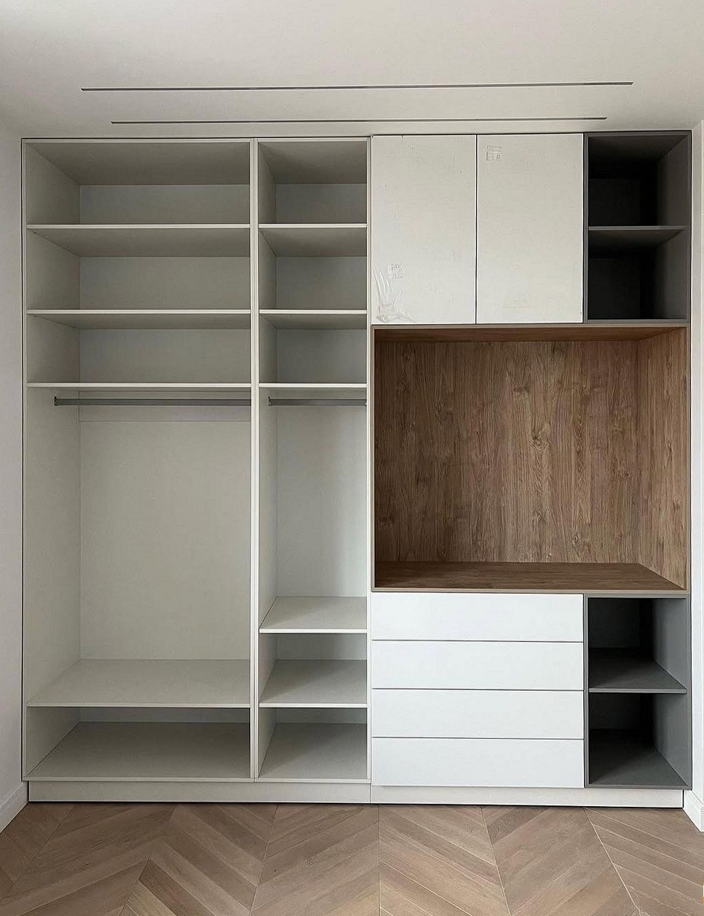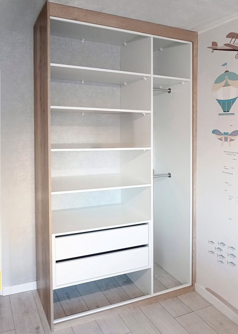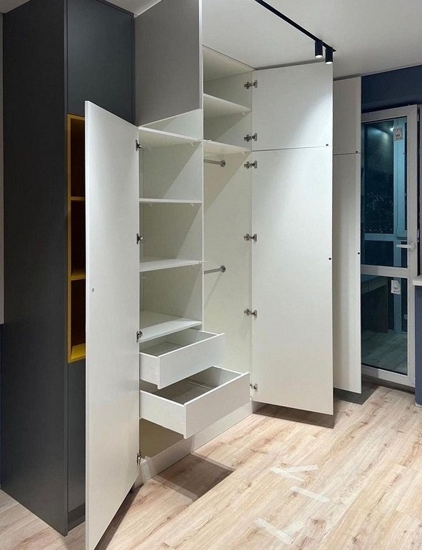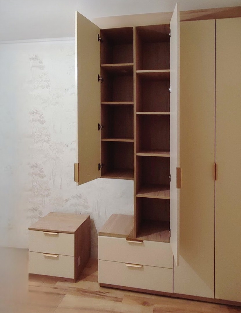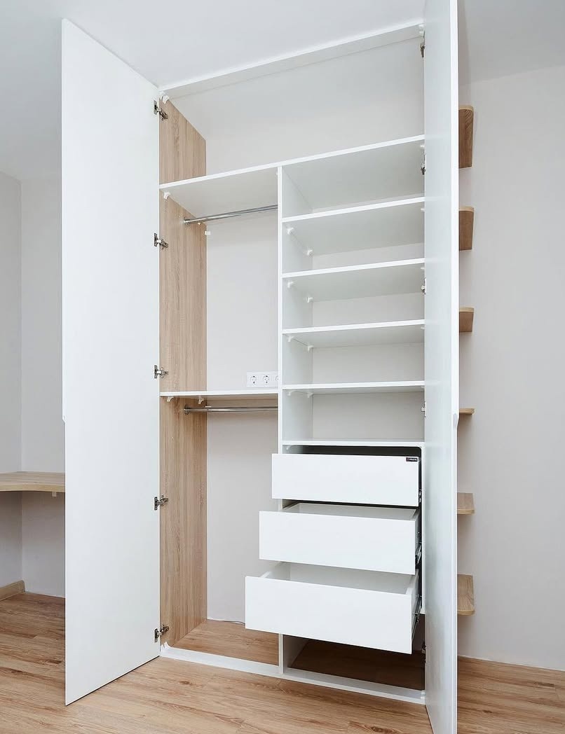Встраиваемый распашной шкаф с открытыми полками «Модель 668»