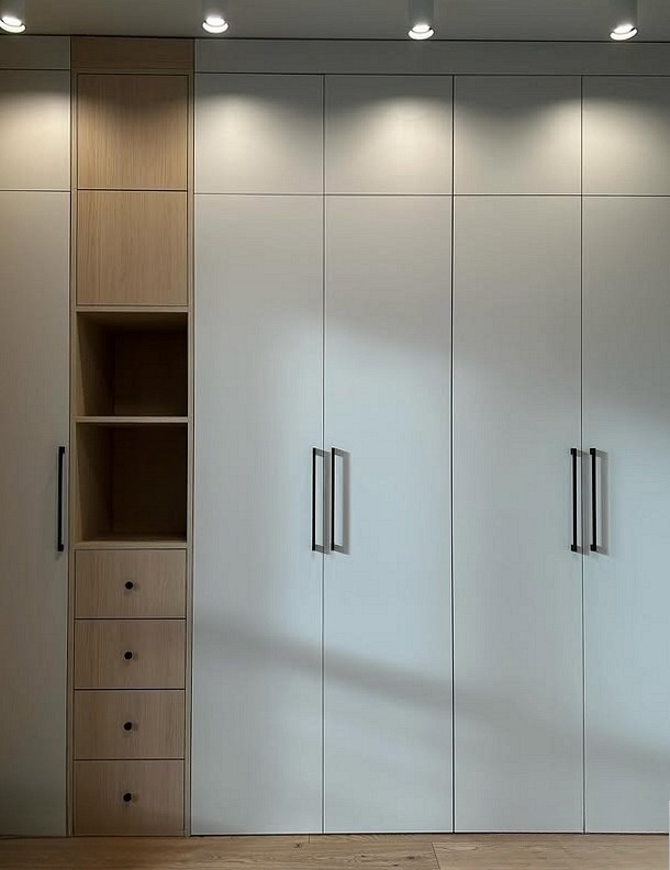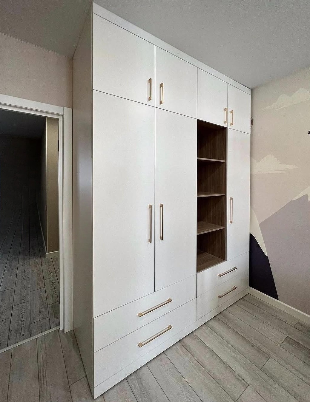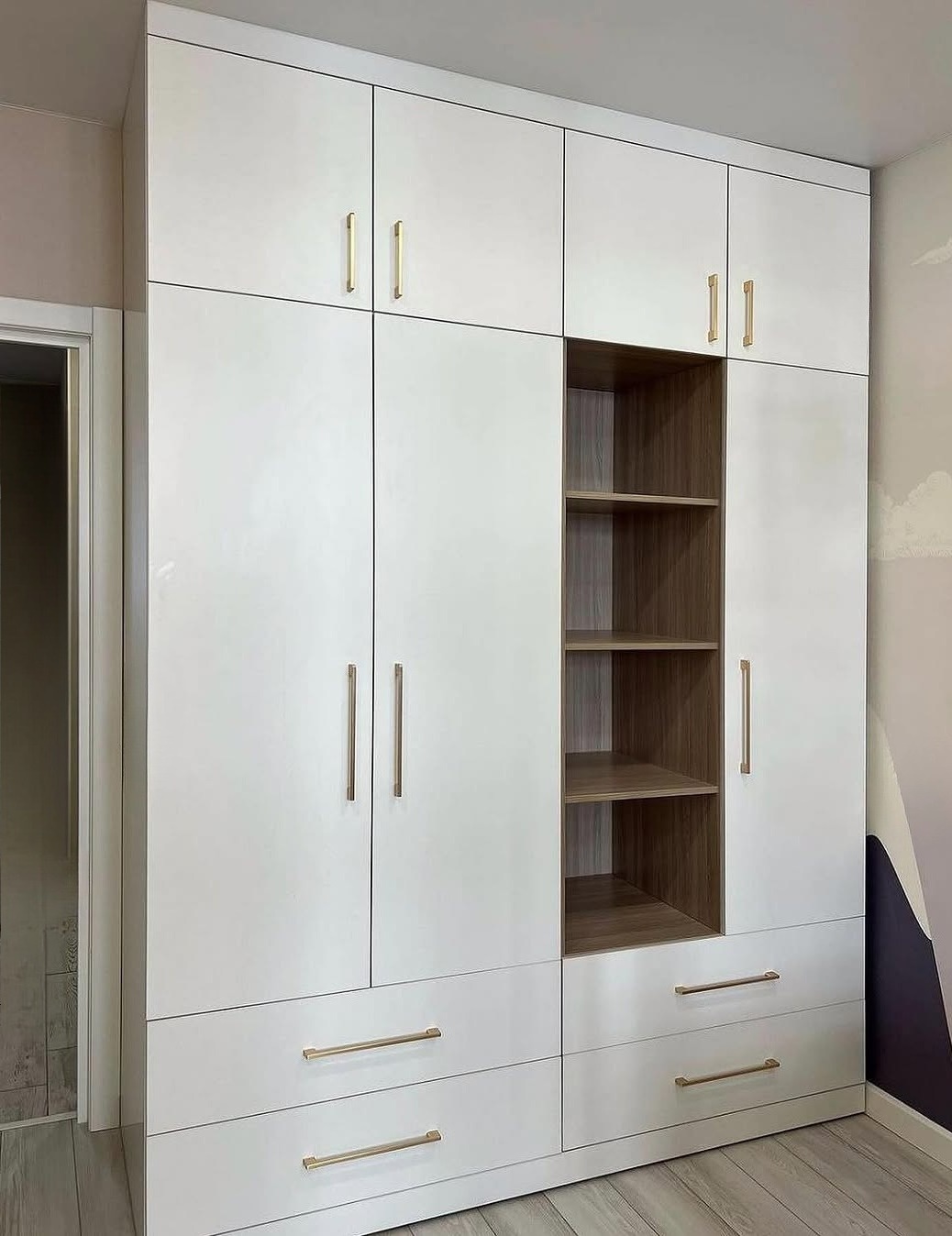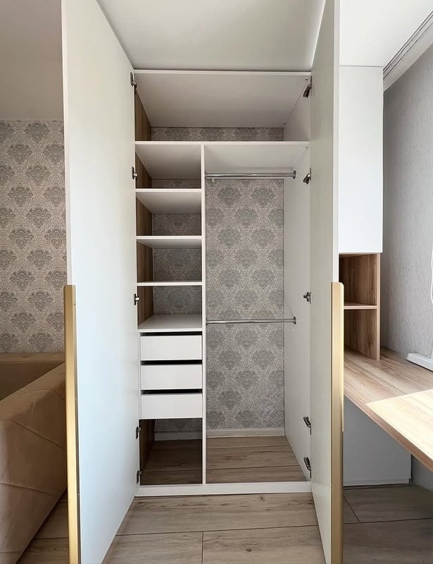 Встраиваемый распашной шкаф с открытыми полками «Модель 668»