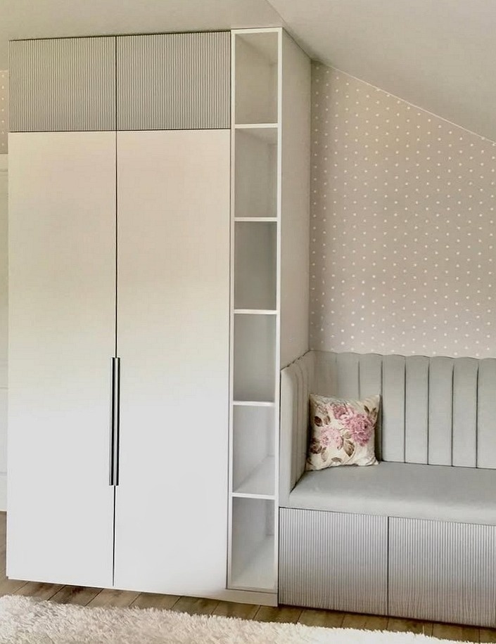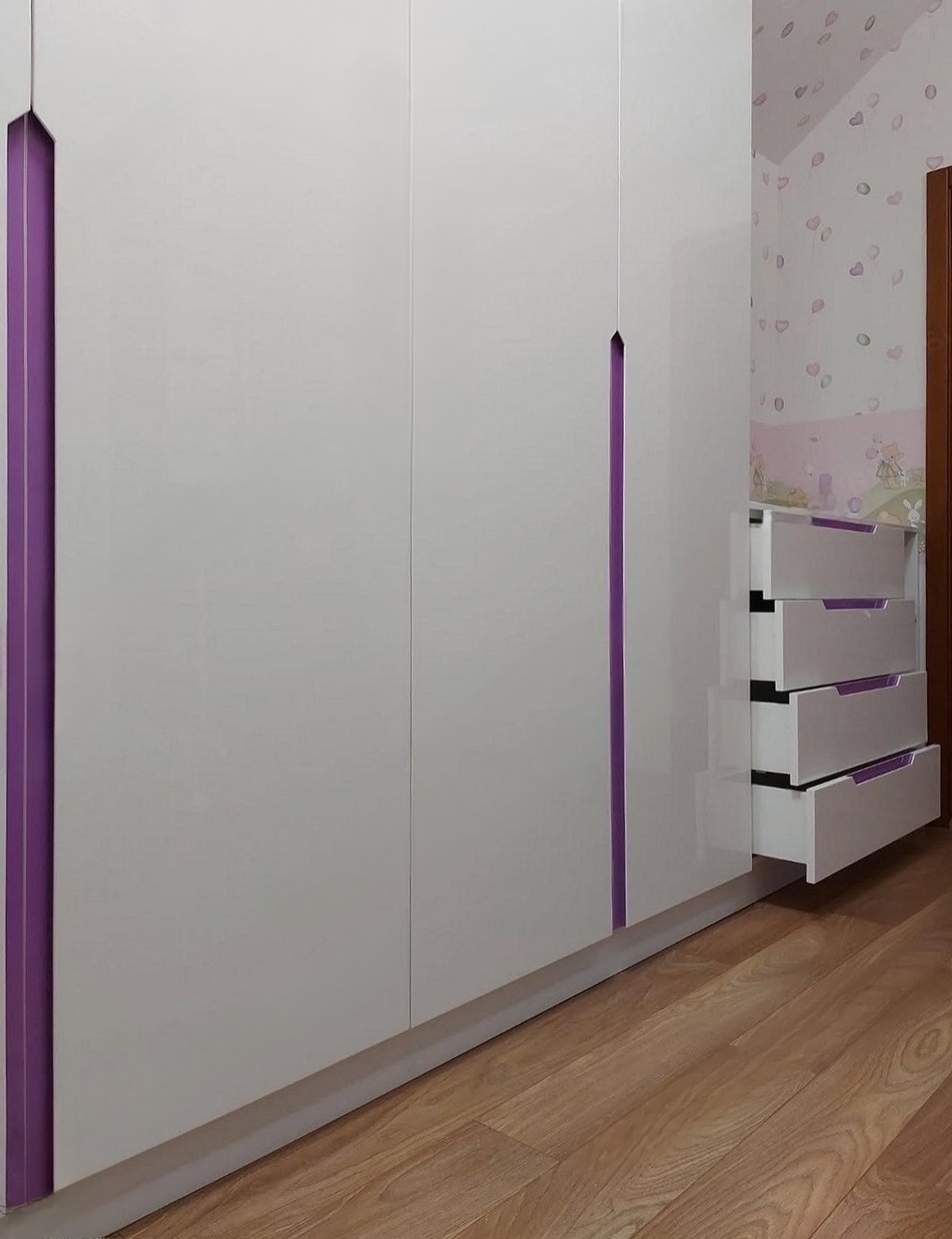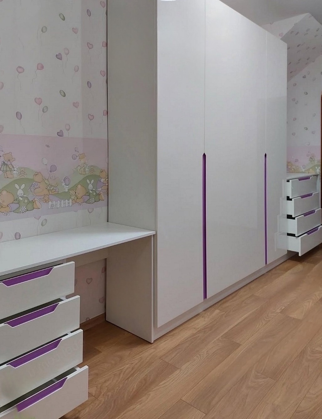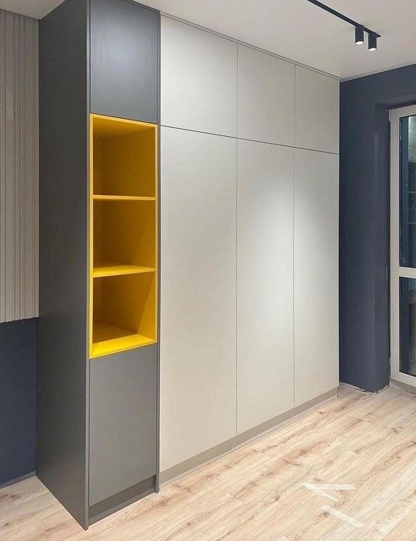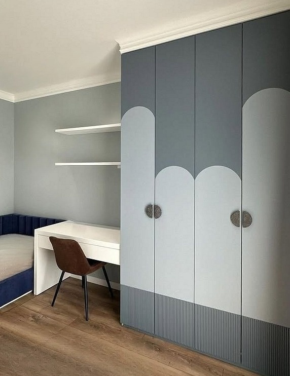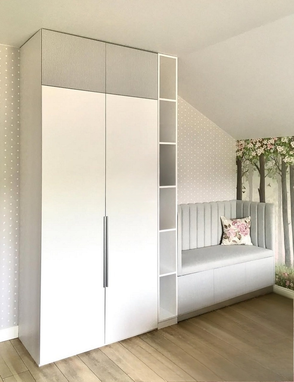 Встроенный двухцветный шкаф с фрезерованными дверями в детскую «Модель 899»