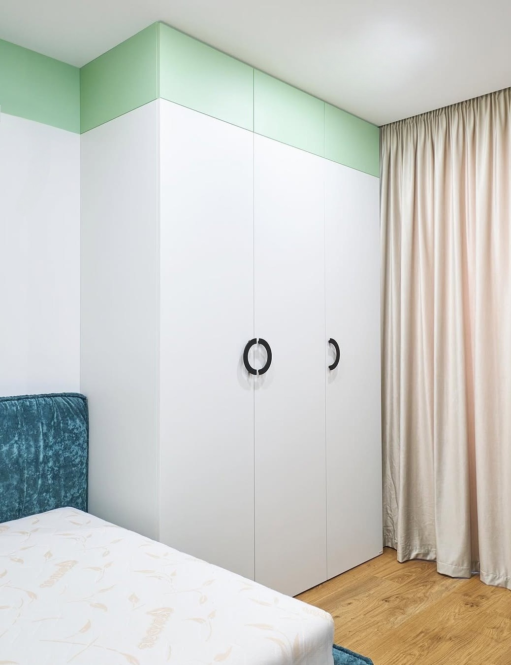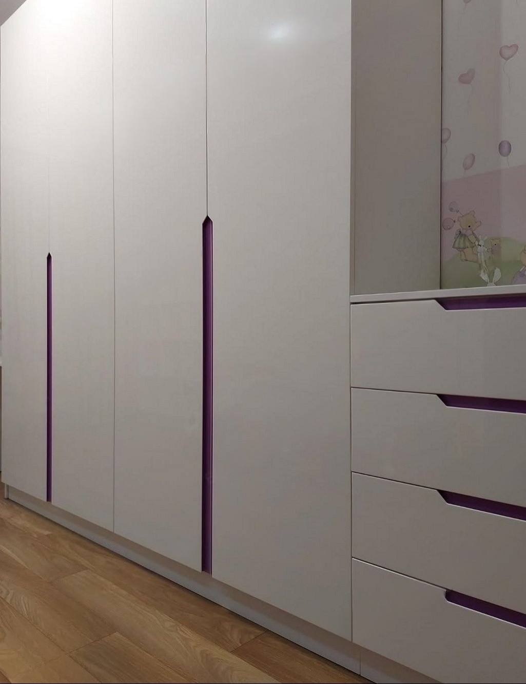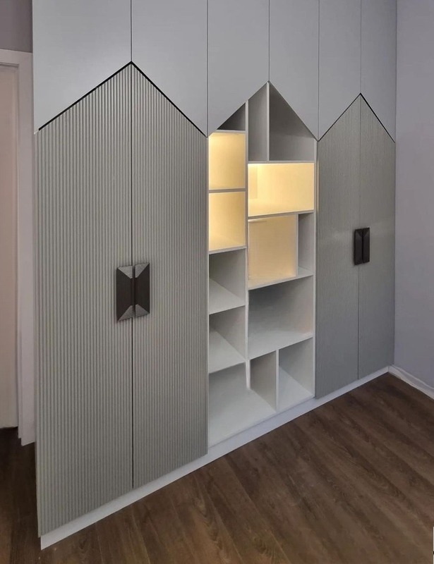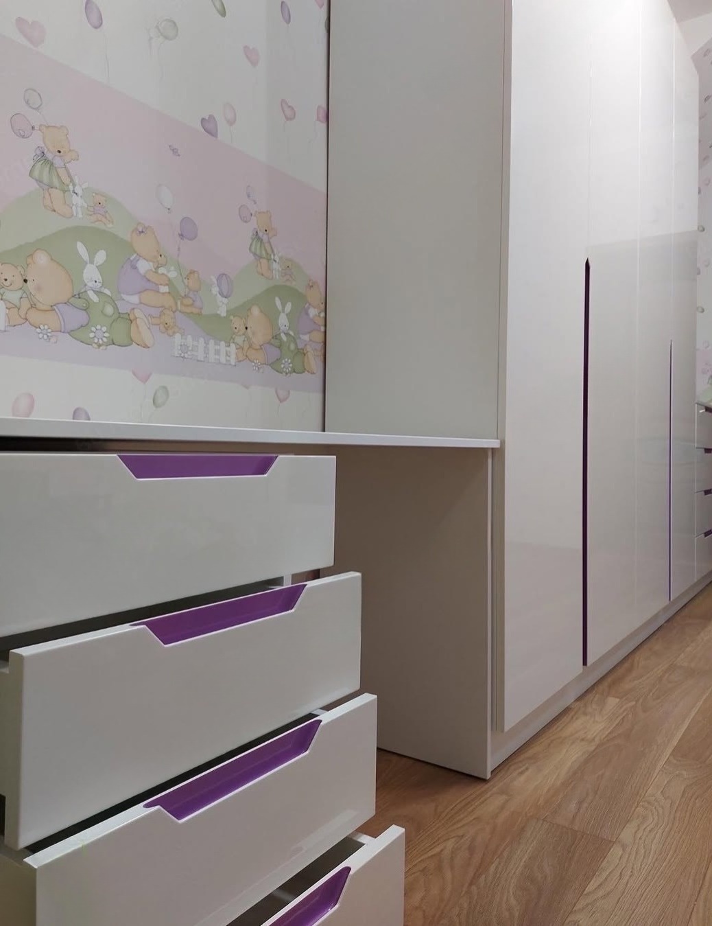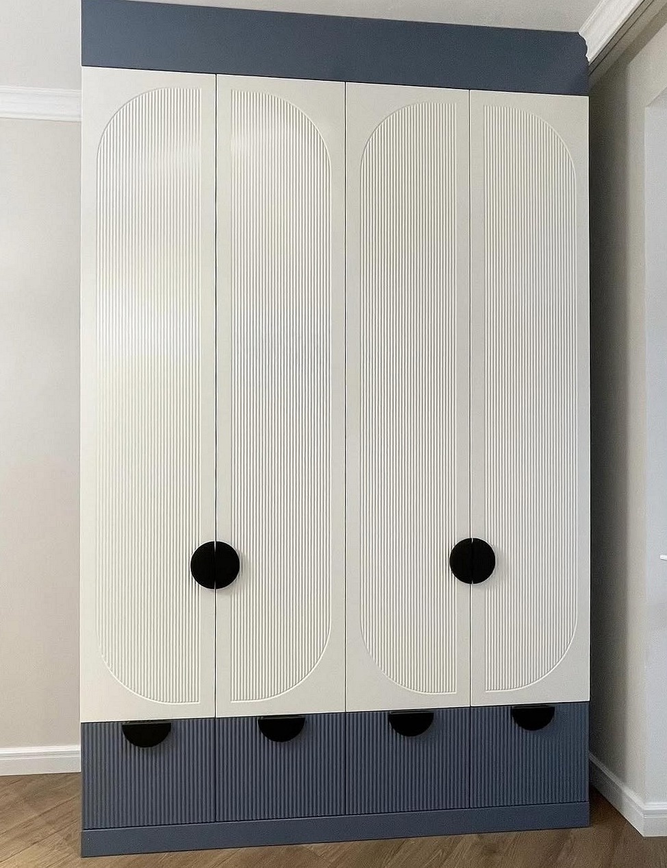 Встроенный двухцветный шкаф с фрезерованными дверями в детскую «Модель 899»