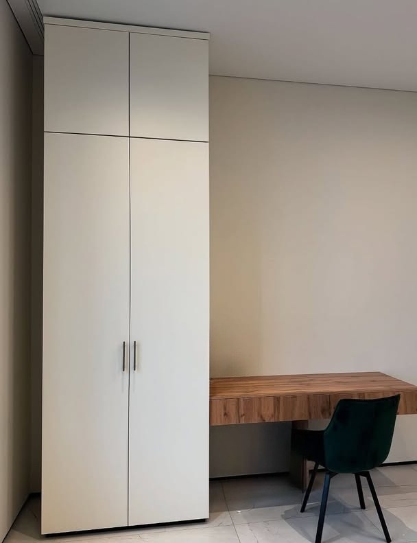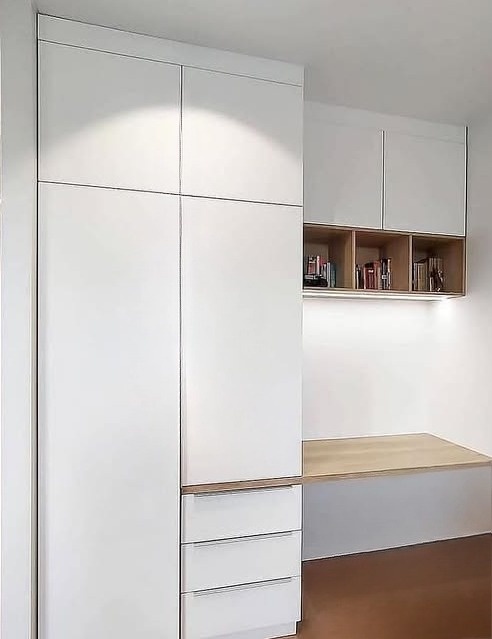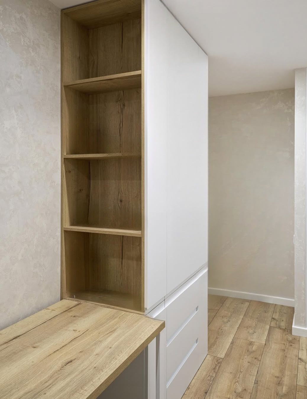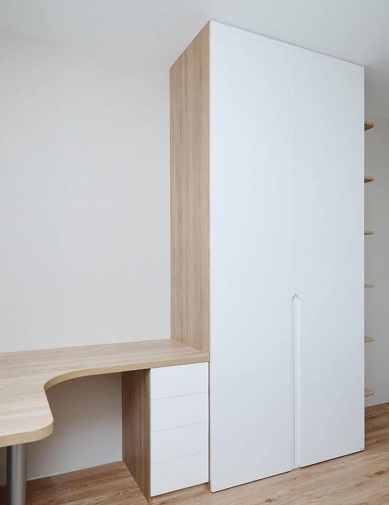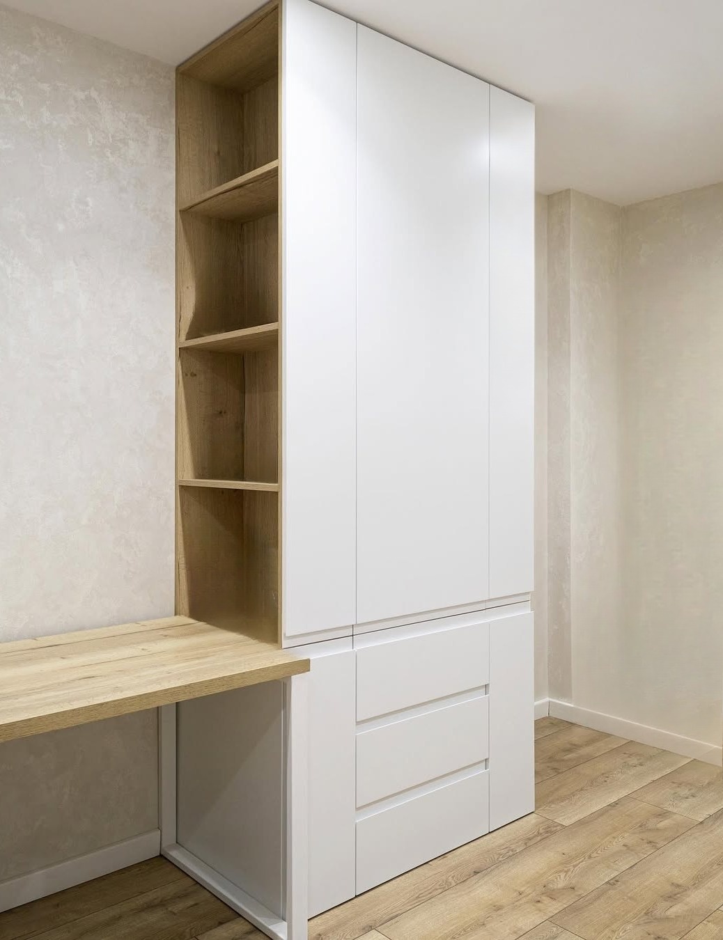 Узкий белый шкаф с рабочей зоной в стиле сканди «Модель 887»
