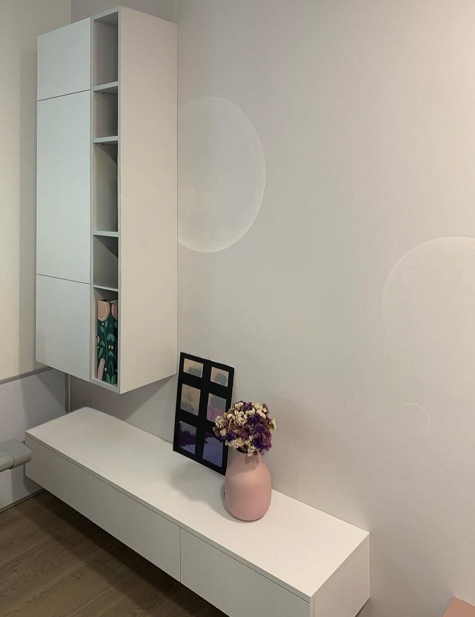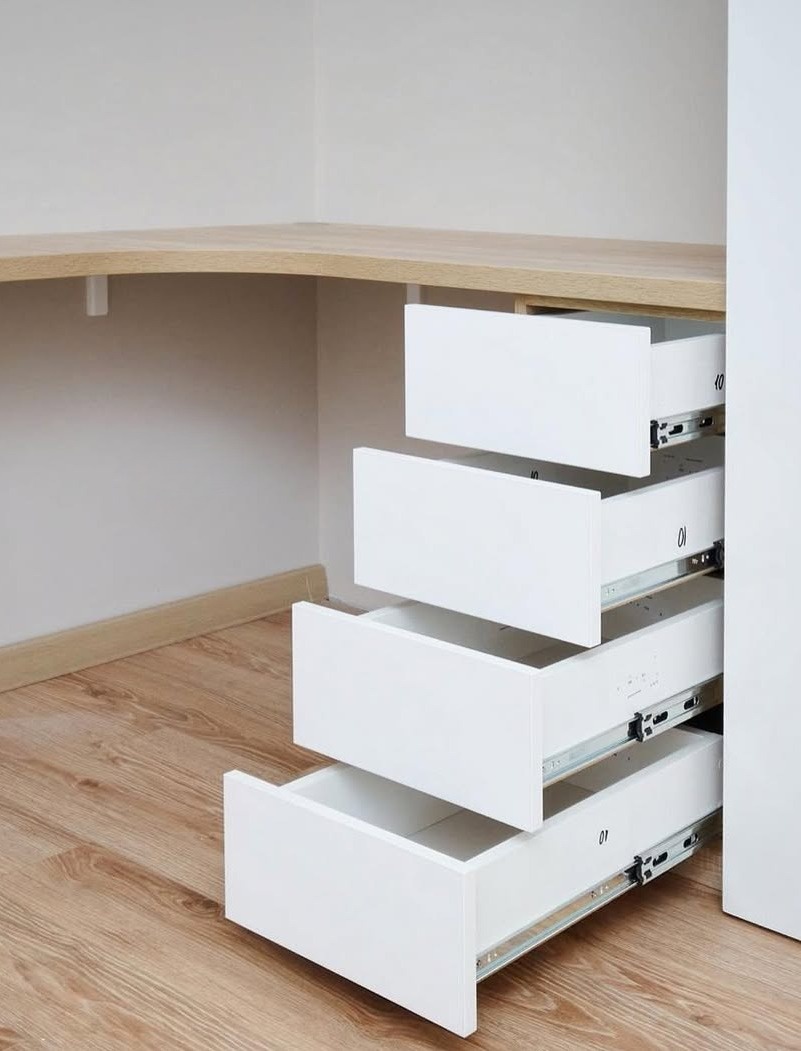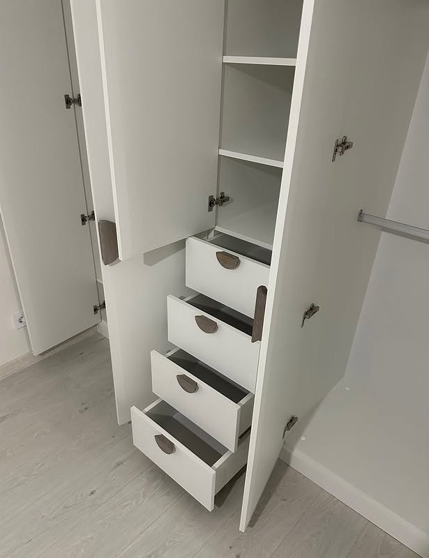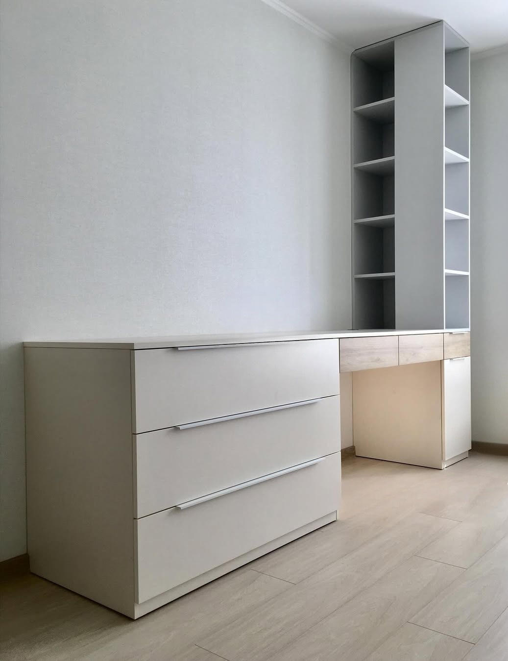 Узкий белый шкаф с рабочей зоной в стиле сканди «Модель 887»
