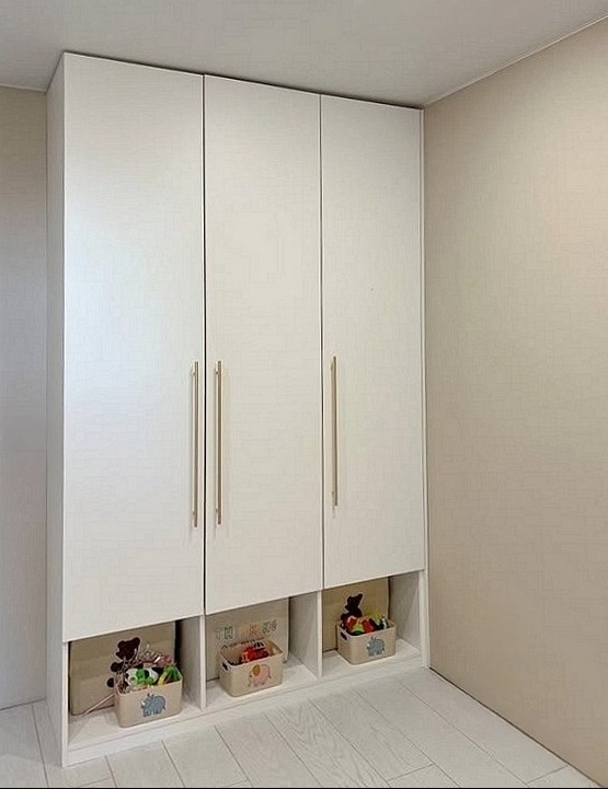 Белый шкаф под потолок с нишей внизу в детскую «Модель 901»