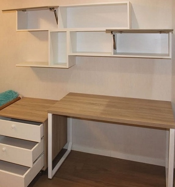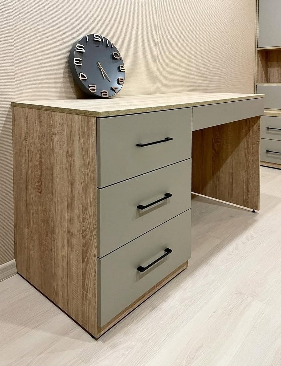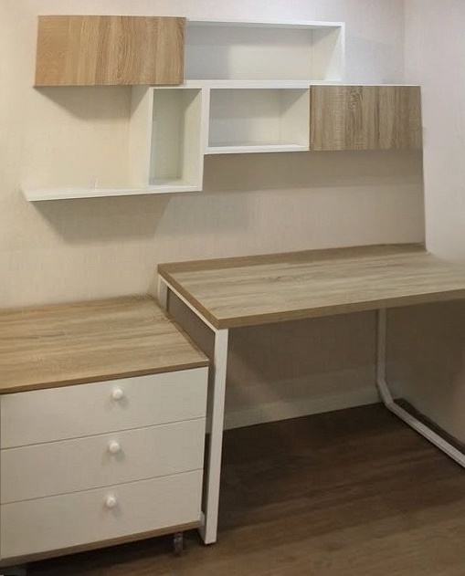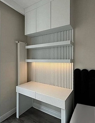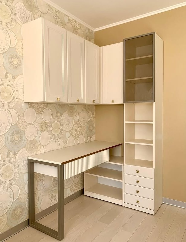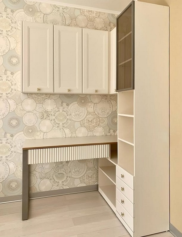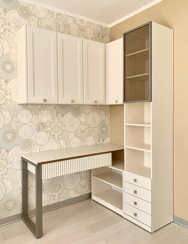 Двухцветный шкаф с фрезеровкой и рабочим столом «Модель 884»
