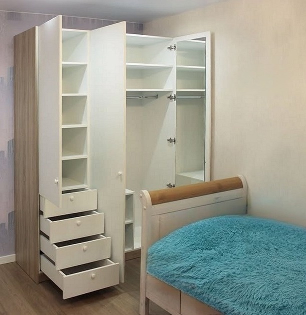 Распашной шкаф в детскую комнату с открытыми полками «Модель 134»
