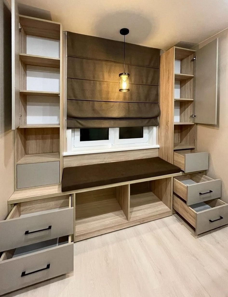 Шкаф вокруг окна жалюзийный с рабочим местом «Модель 17»