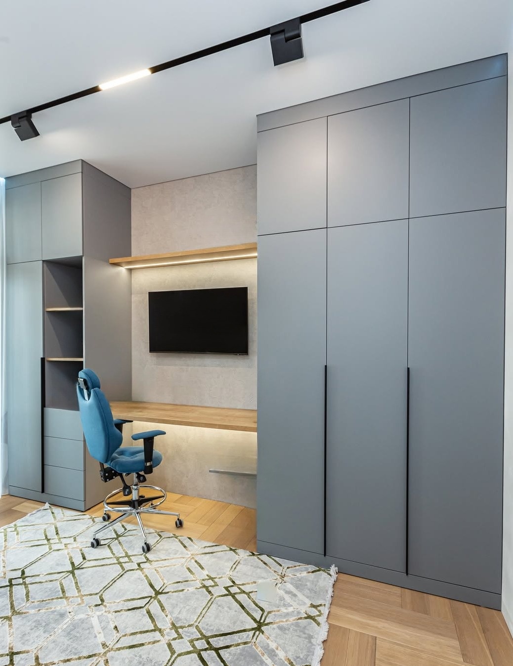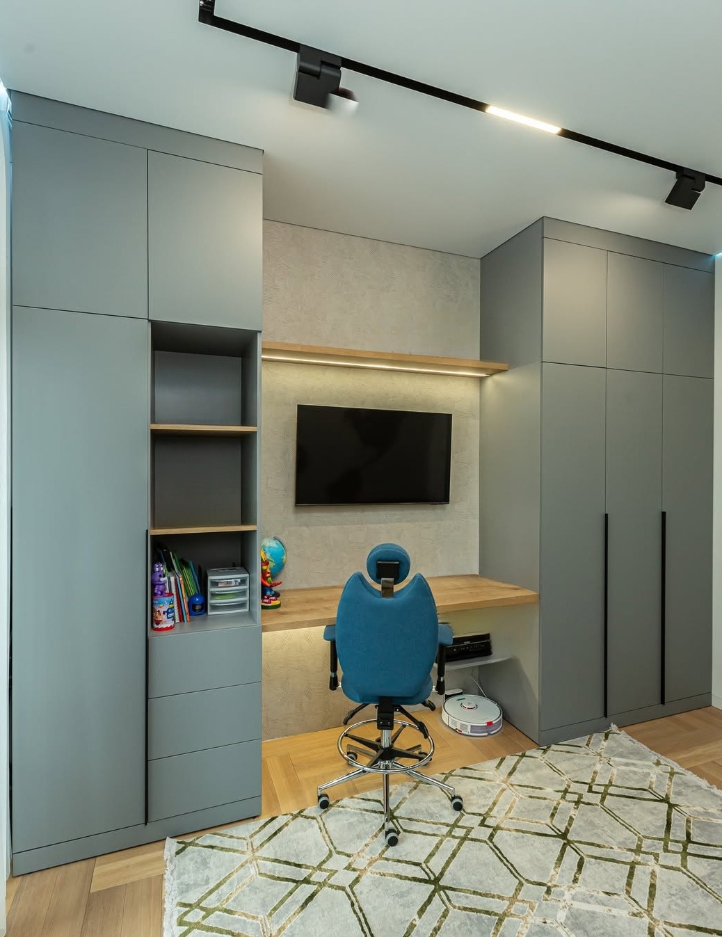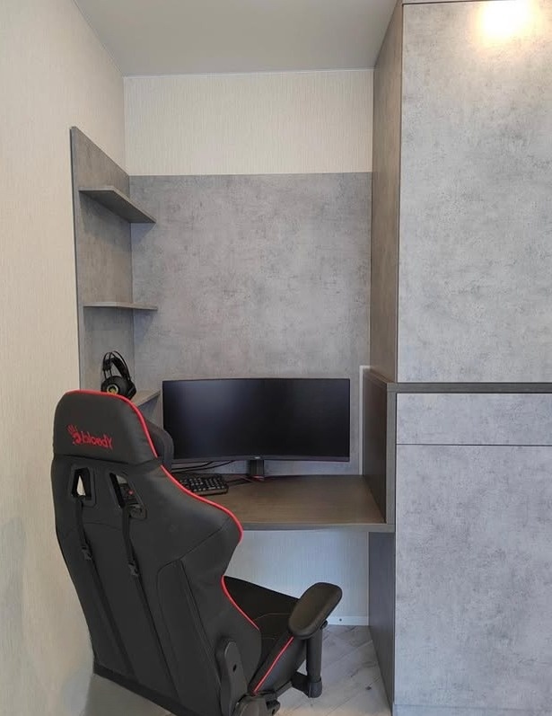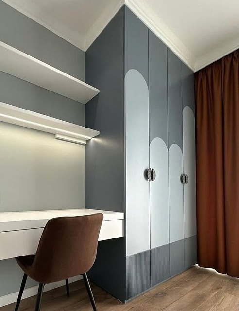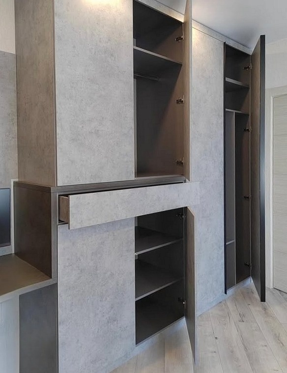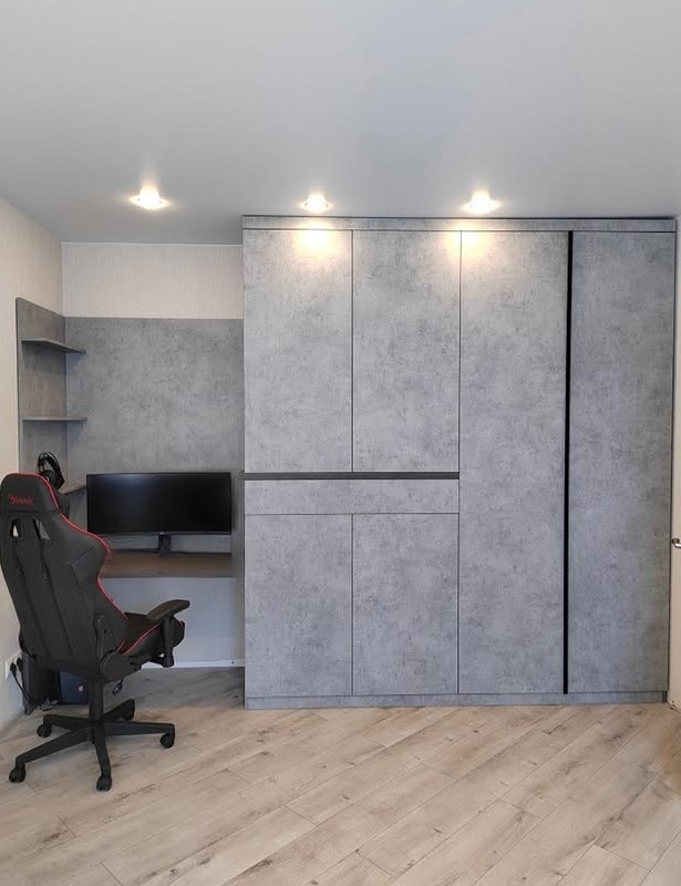 Встроенный шкаф в детскую цвета бетон со столом «Модель 882»