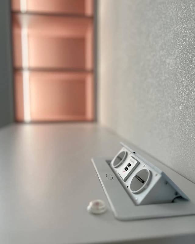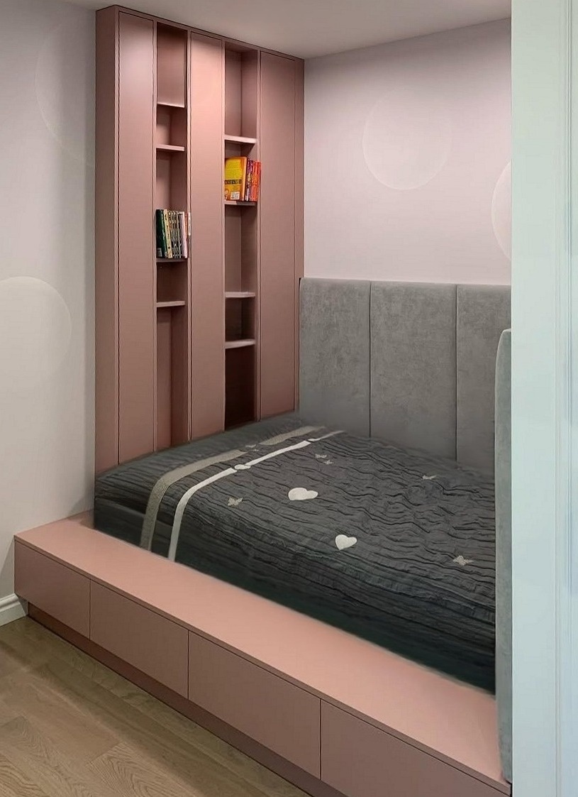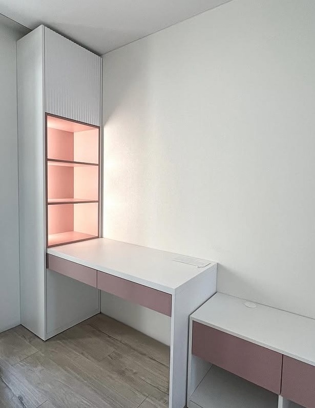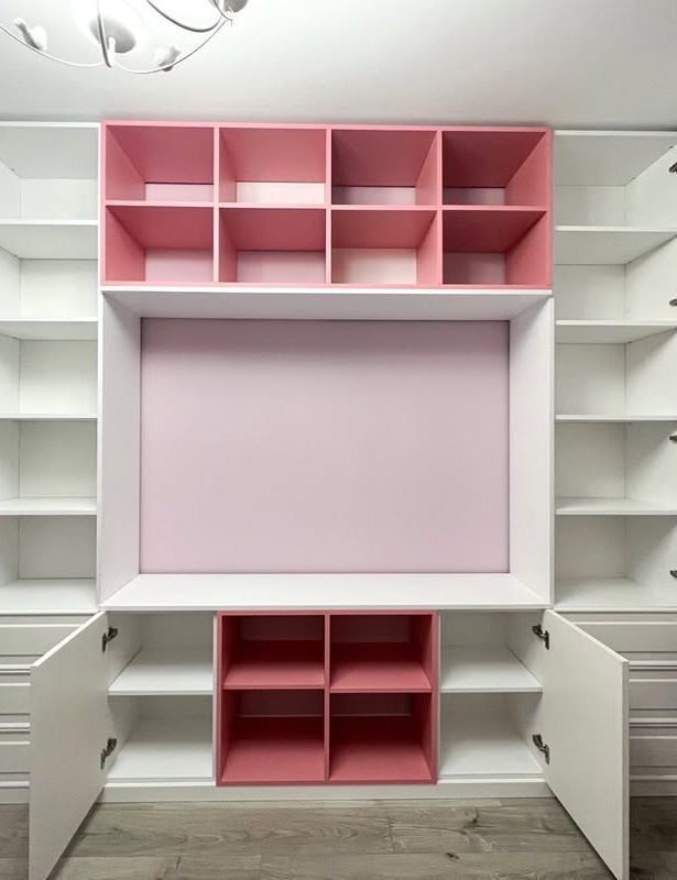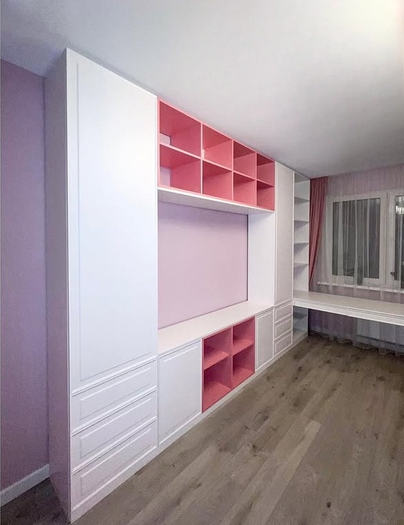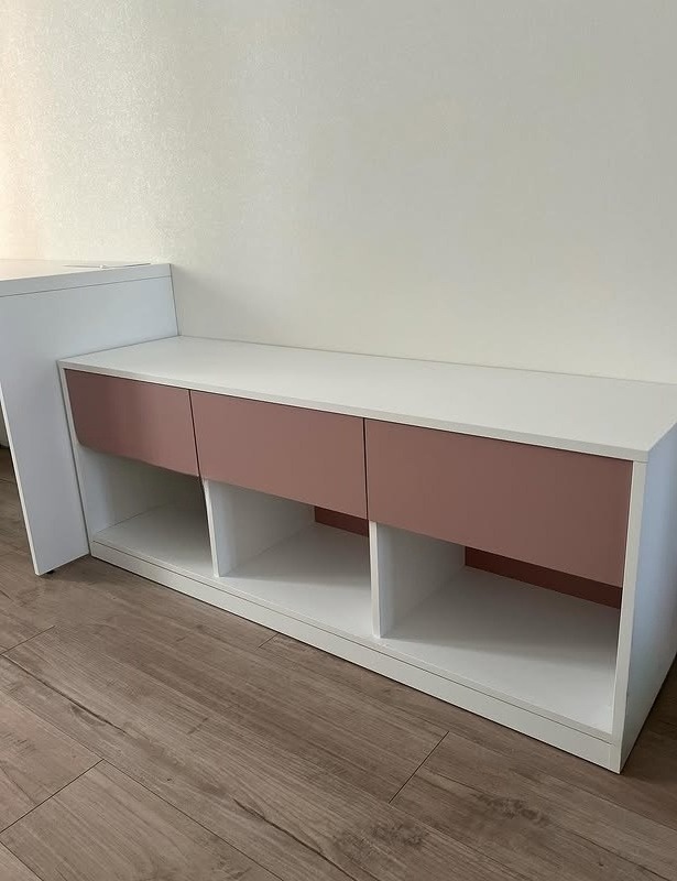 Низкий шкаф из МДФ розового цвета с нишей «Модель 851»