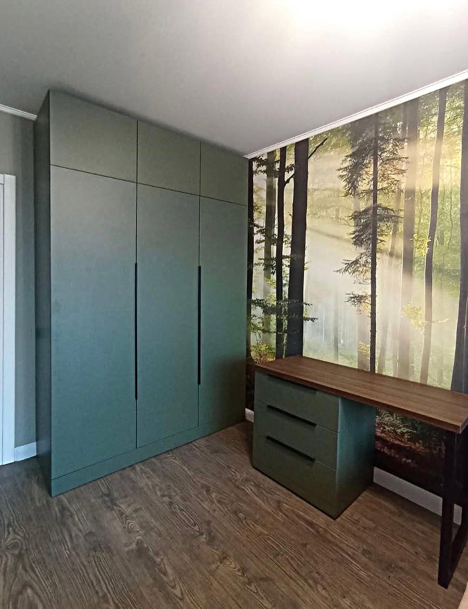 Шкаф из ЛДСП темно-зеленого цвета со столом «Модель 897»