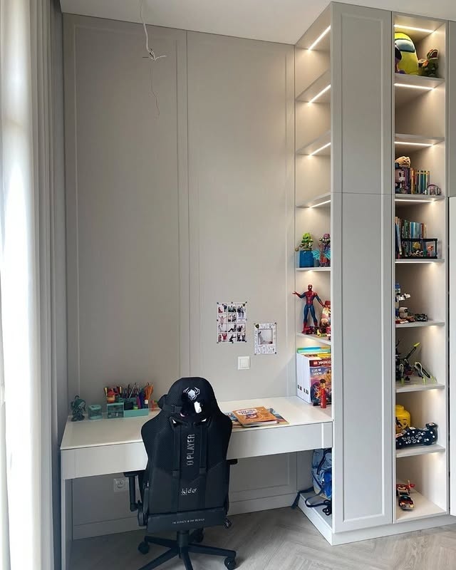 Детская серого цвета с рабочим столом и подсветкой «Модель 888»