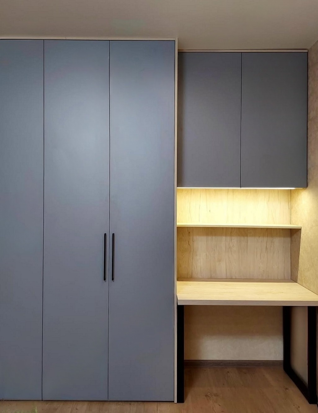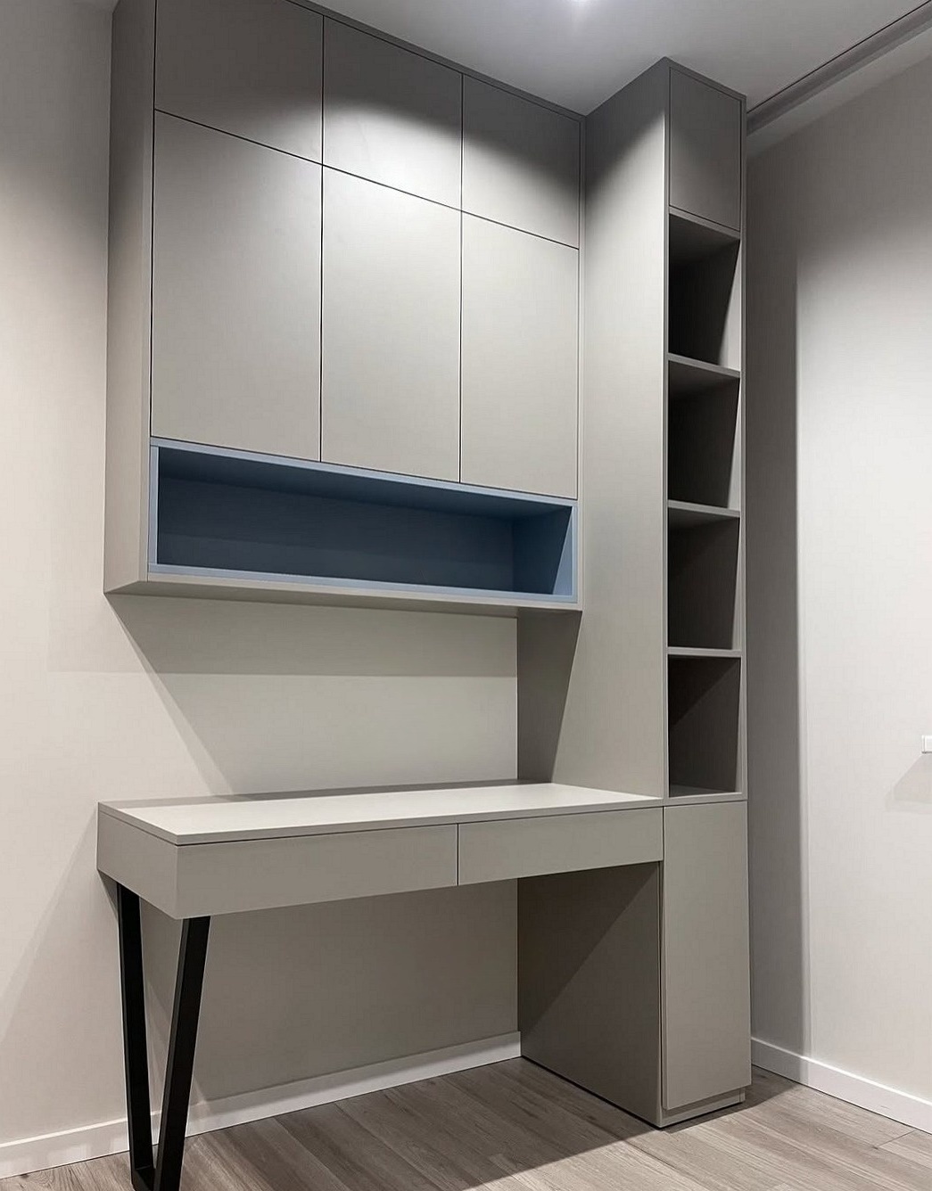 Серый шкаф из МДФ с рабочей зоной «Модель 141»