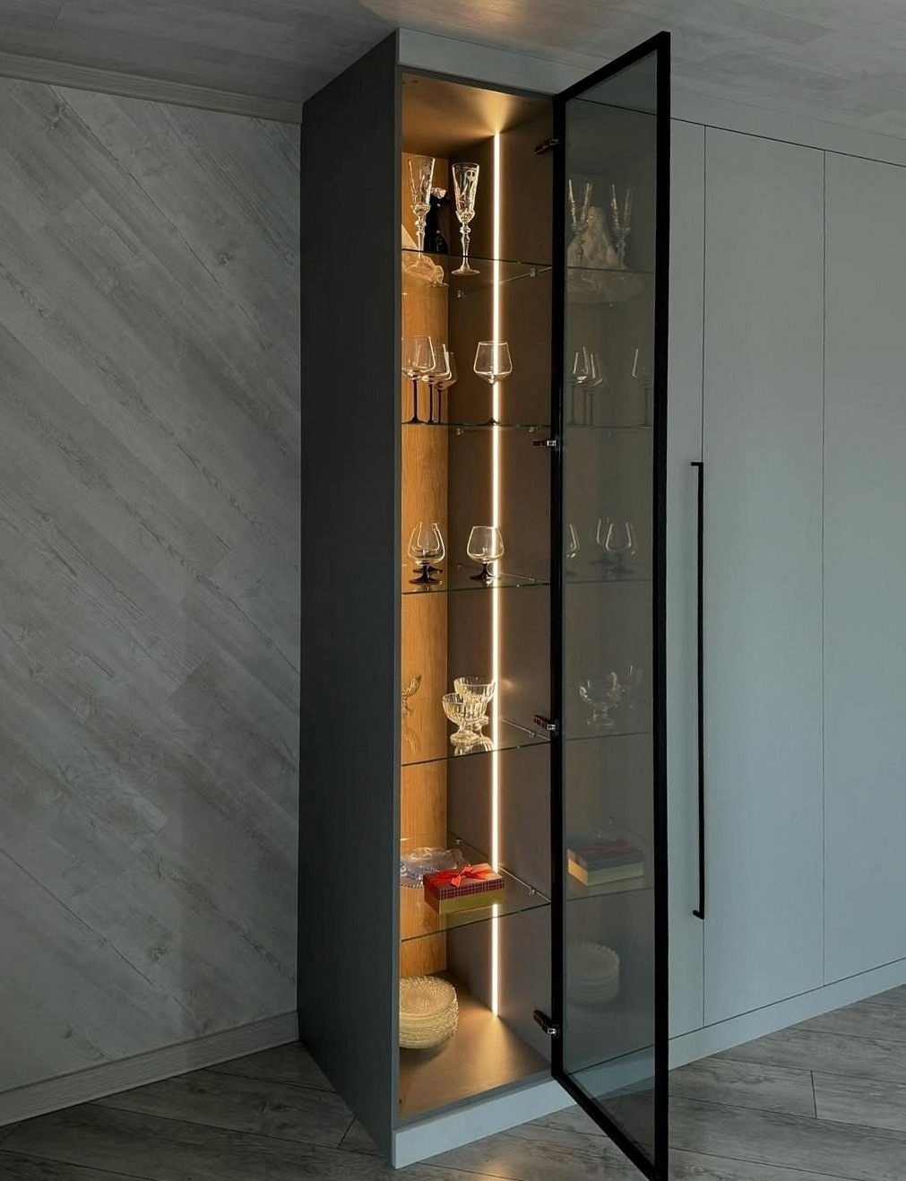 Узкий шкаф-витрина с прозрачным стеклом на фасаде «Модель 1157»