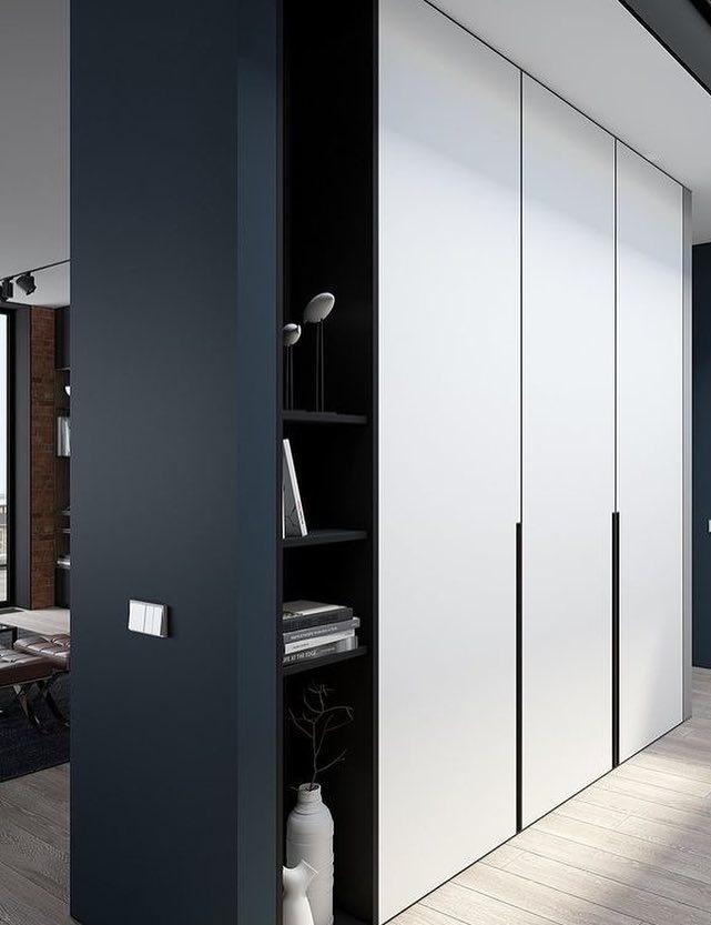 Распашной шкаф синего цвета вокруг двери «Модель 178»