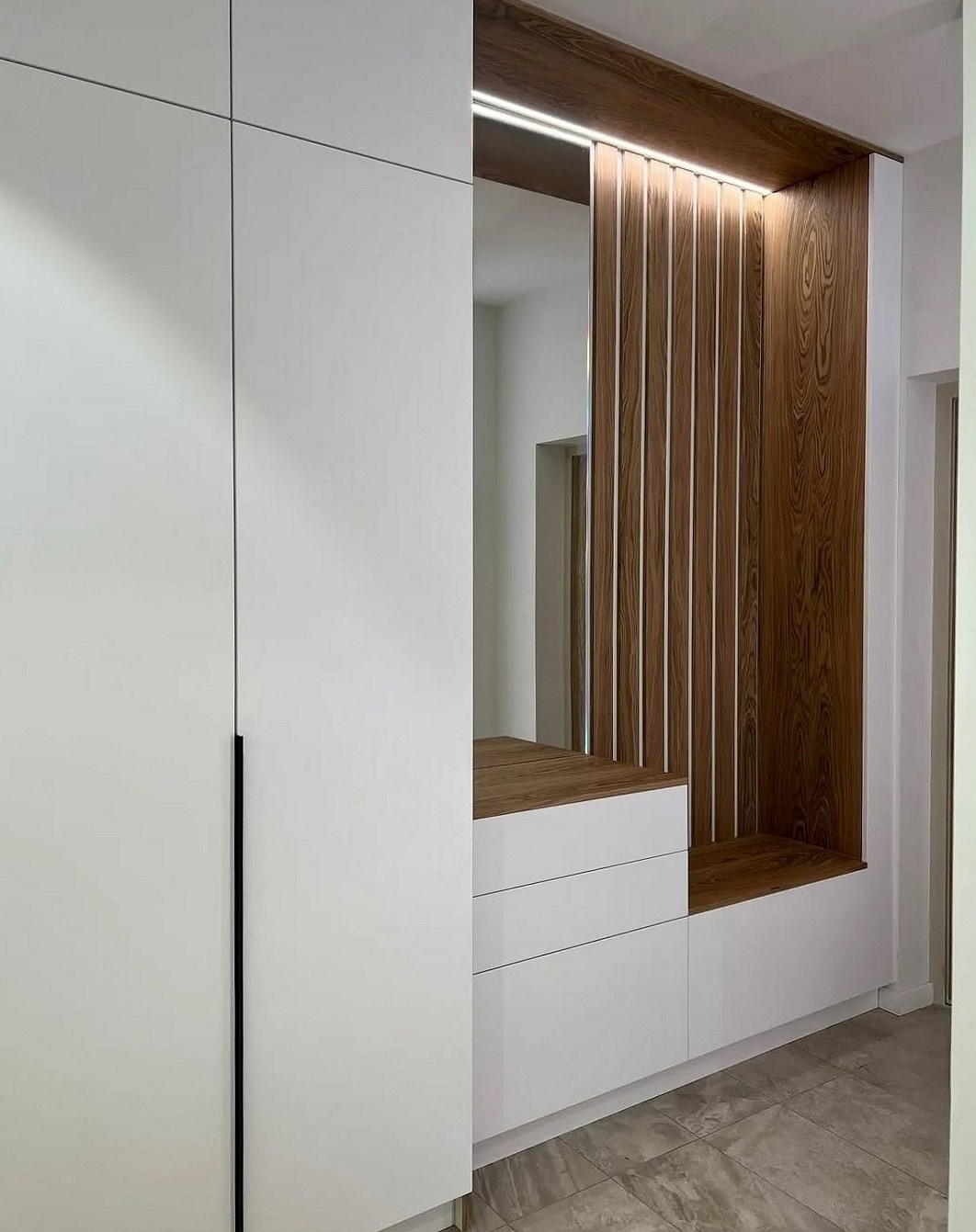 Большая встроенная прихожая в стиле сканди «Модель 655»