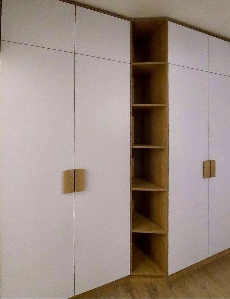 Угловой шкаф из МДФ белого цвета в минимализме «Модель 1158»