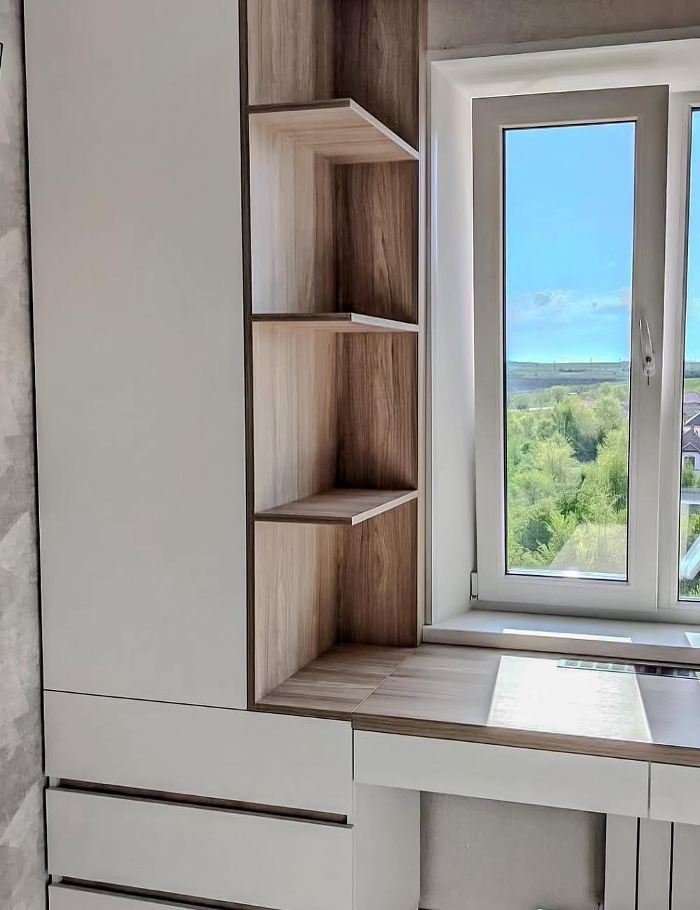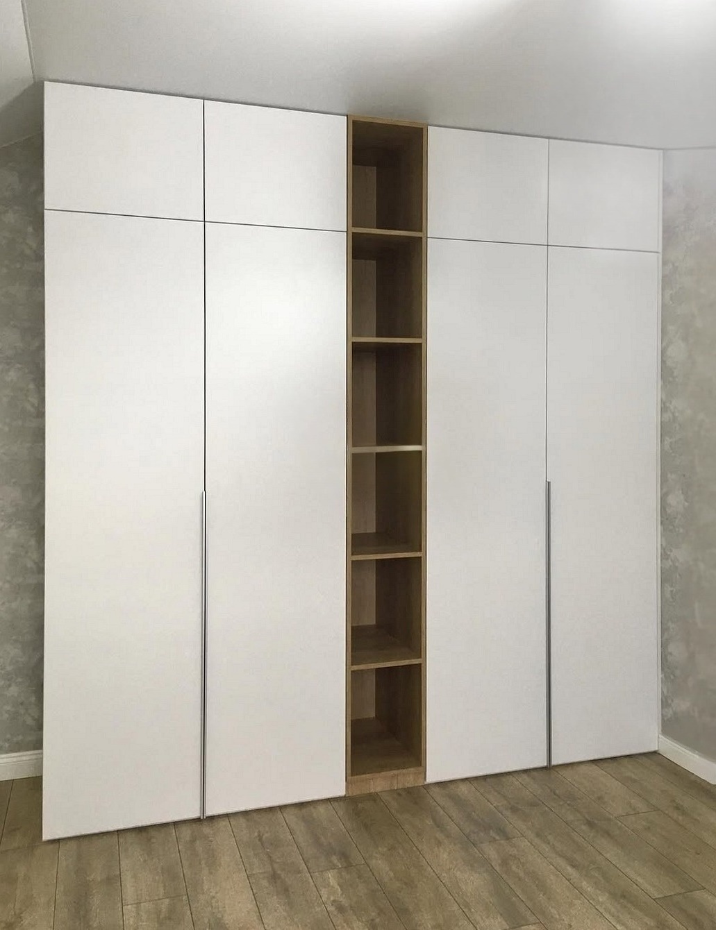 Встроенный в спальню шкаф с открытыми полками посередине «Модель 544»