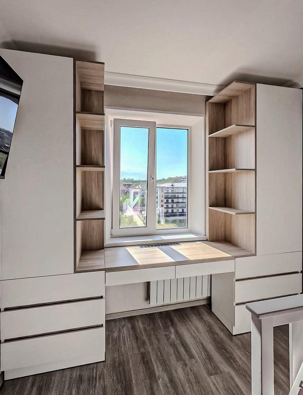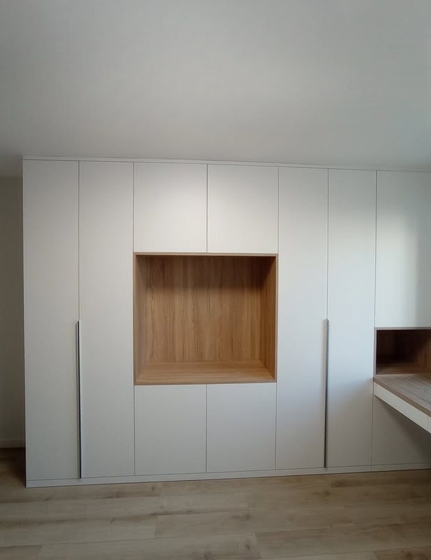 Распашной шкаф на заказ с нишей под тв и столом «Модель 1015»