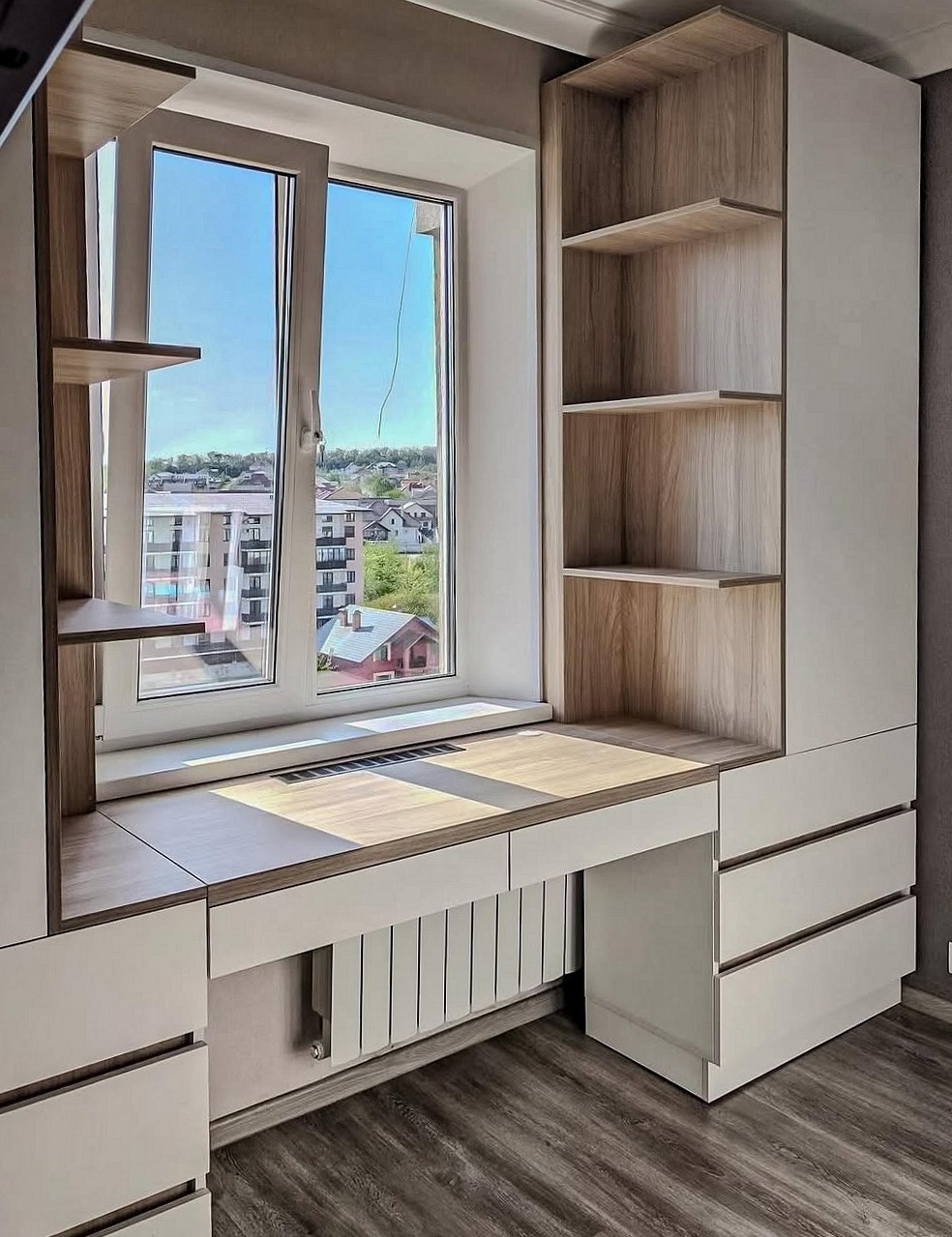 Встраиваемый белый шкаф со столом в детскую «Модель 937»