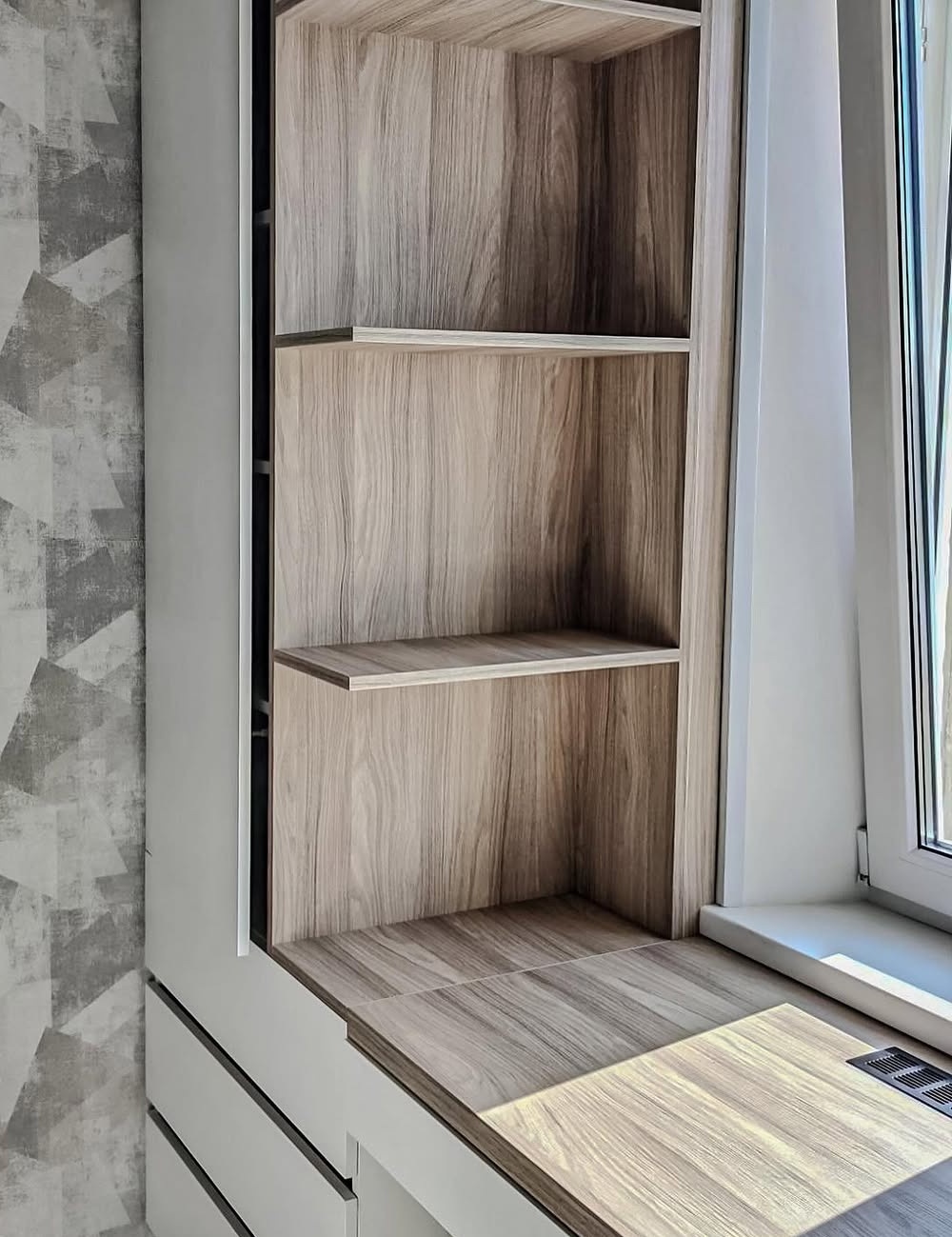 Шкаф под потолок с открытыми полками в скандинавском стиле «Модель 593»