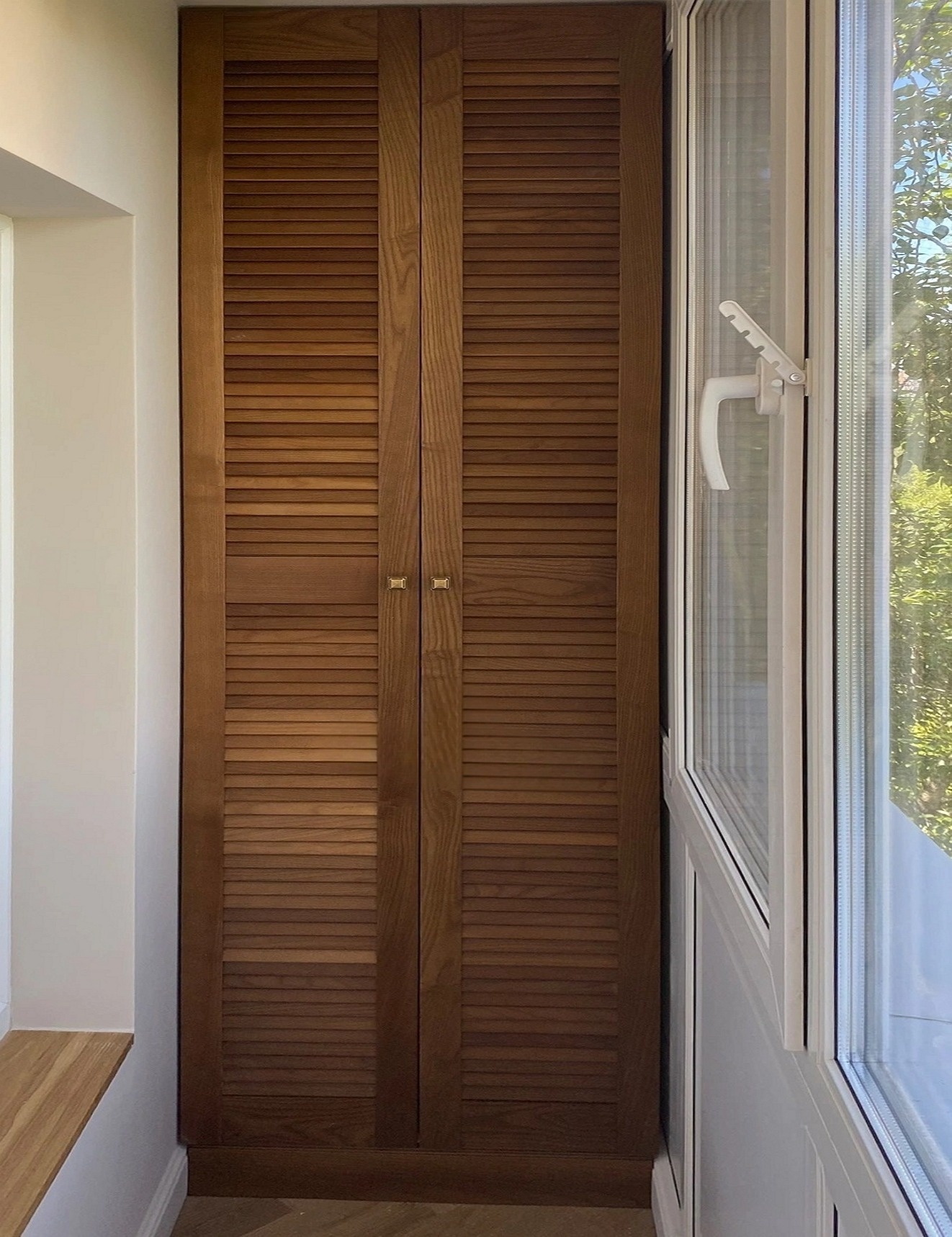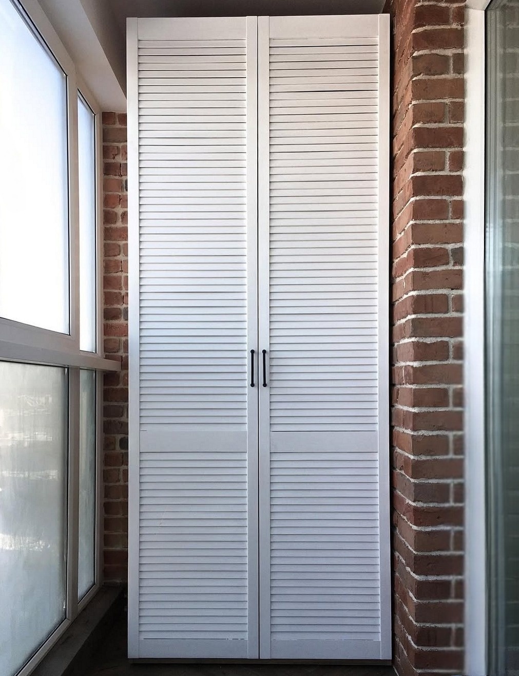 Встроенный на балкон белый жалюзийный шкаф «Модель 963»
