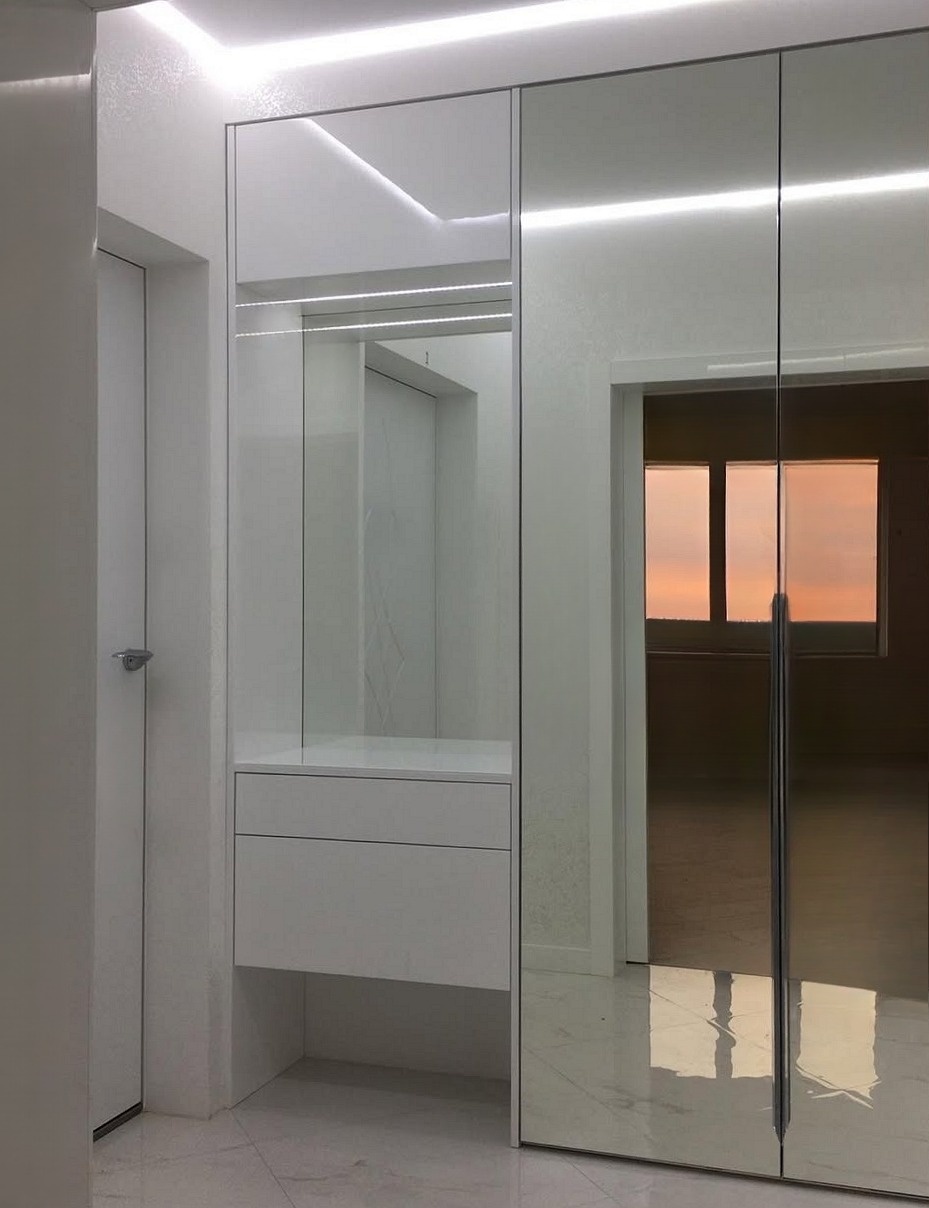 Встроенная прихожая с фрезерованным фасадом и зеркалом «Модель 229»