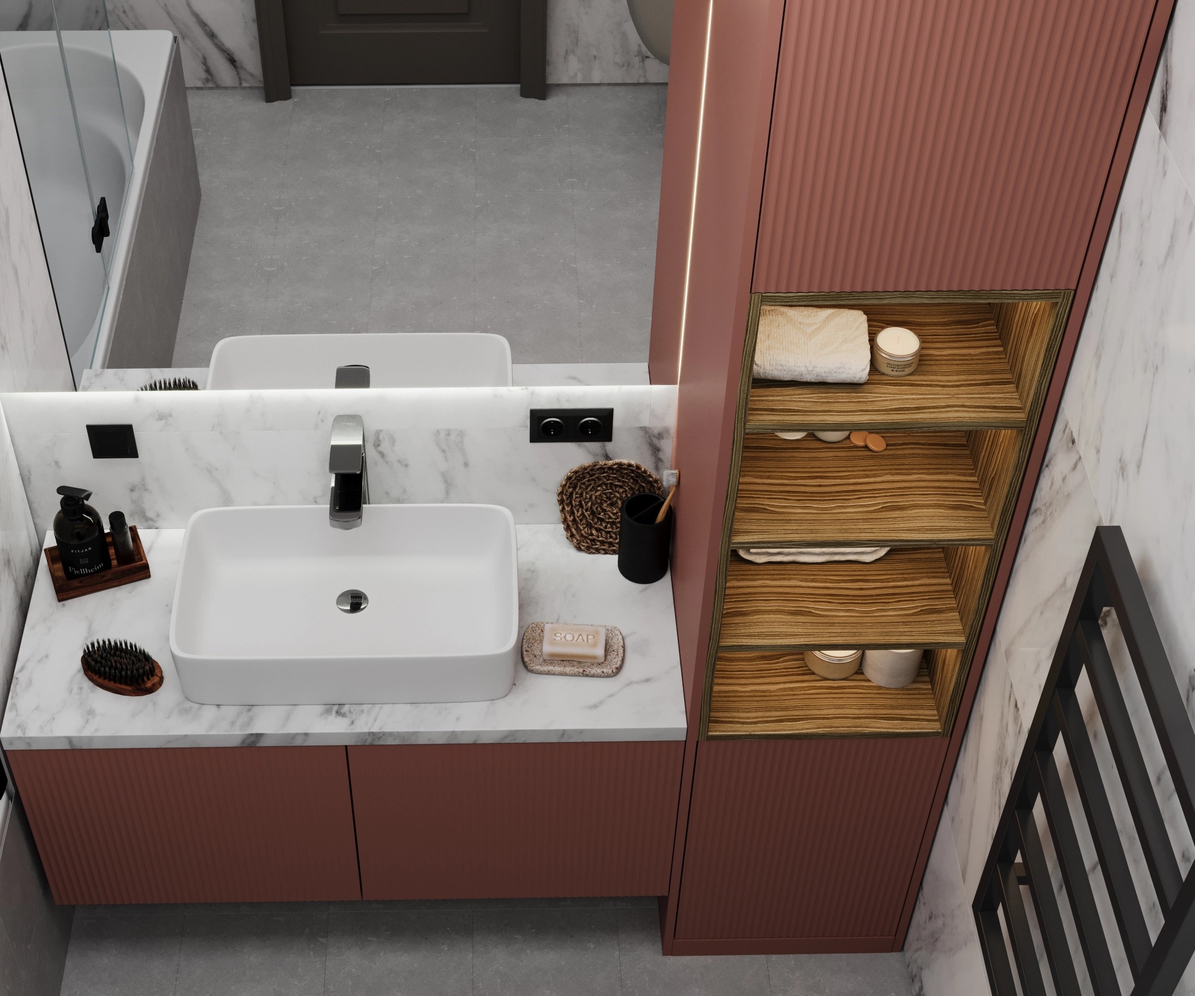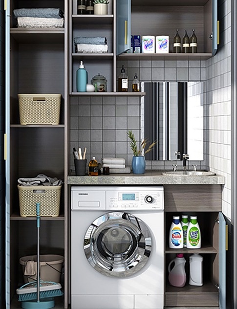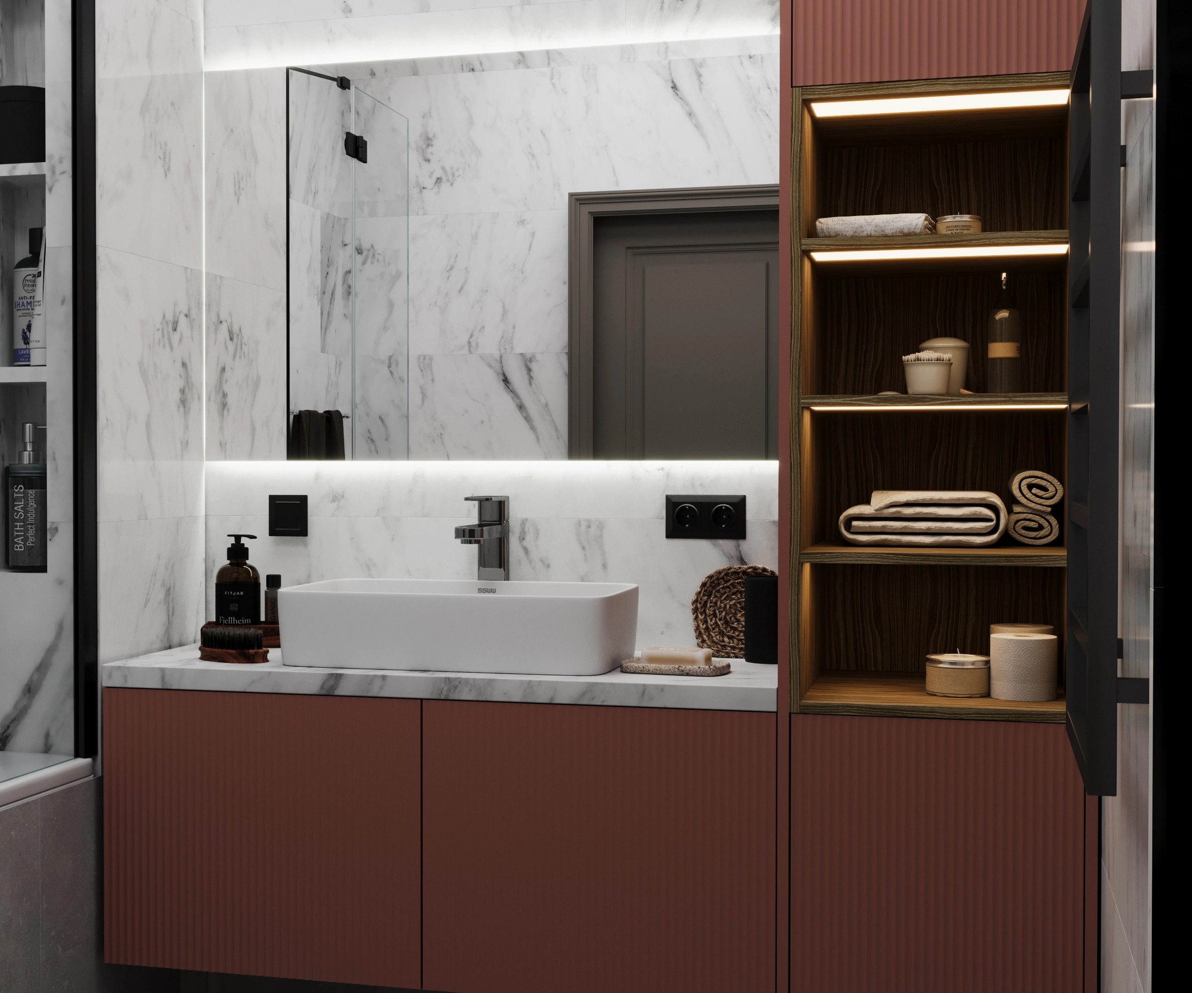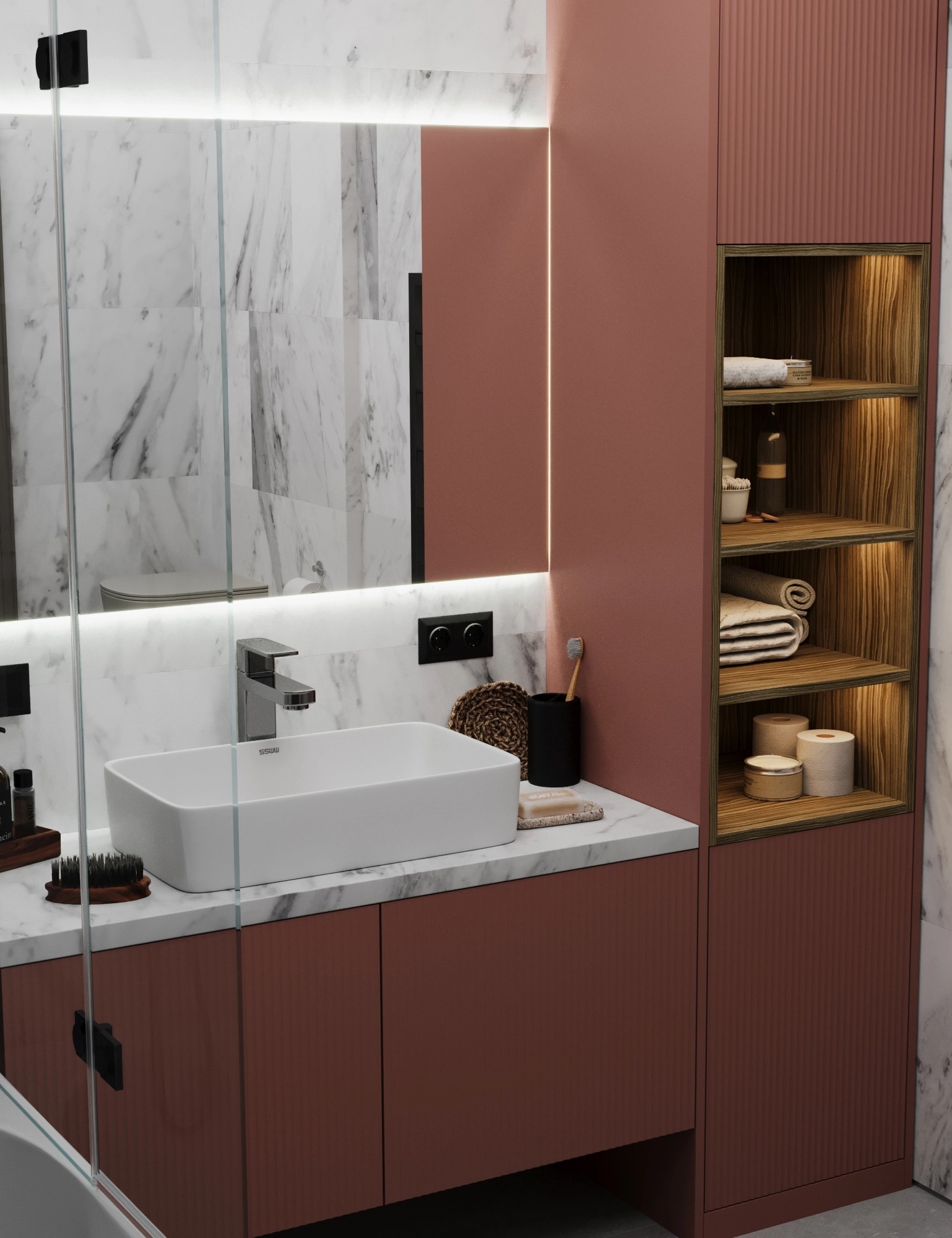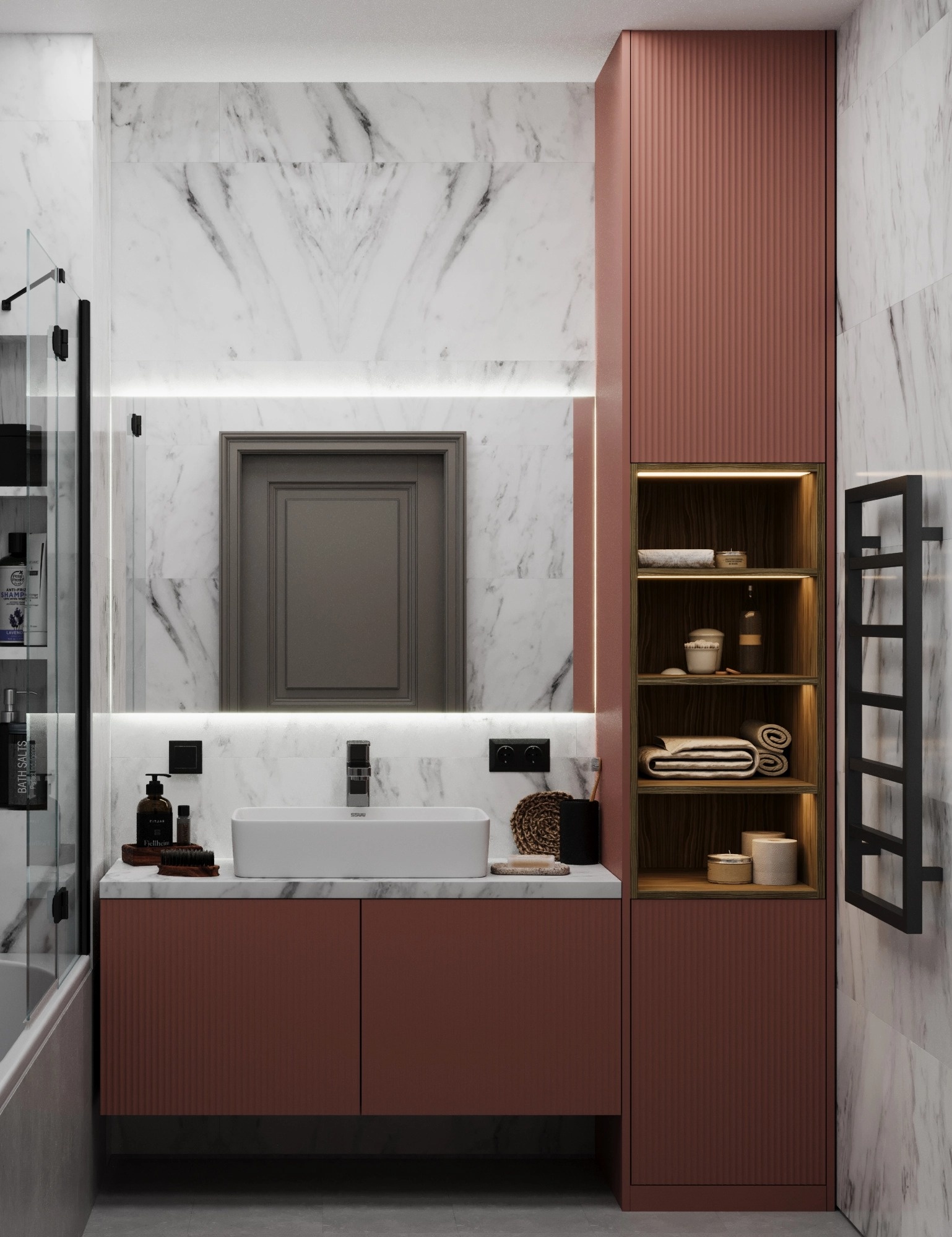 Встроенный угловой шкаф с тумбой в ванную «Модель 1218»