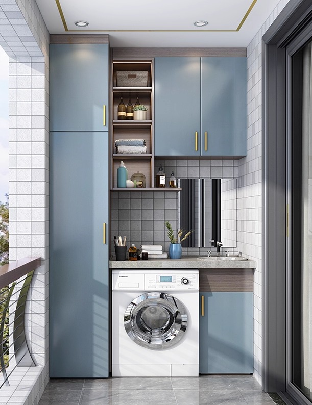 Встраиваемый синий шкаф вокруг кровати «Модель 1208»
