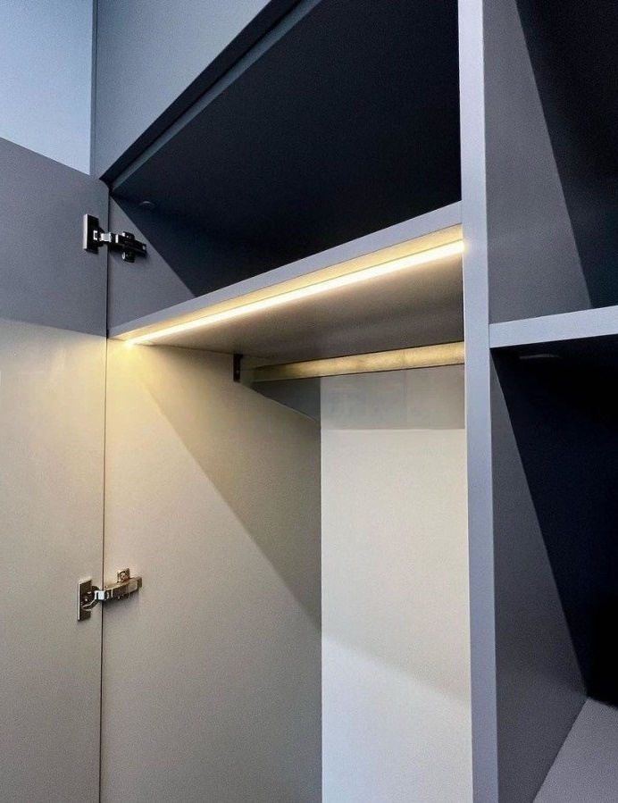Узкий шкаф с открытыми полками и подсветкой «Модель 198»