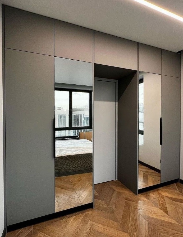 Шкаф-гардероб с зеркальными дверями и открытым пеналом «Модель 203»