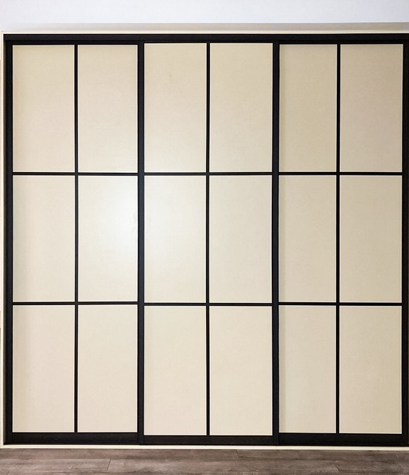 Широкий шкаф-гардероб со стеклянными дверями и черным профилем «Модель 1139»