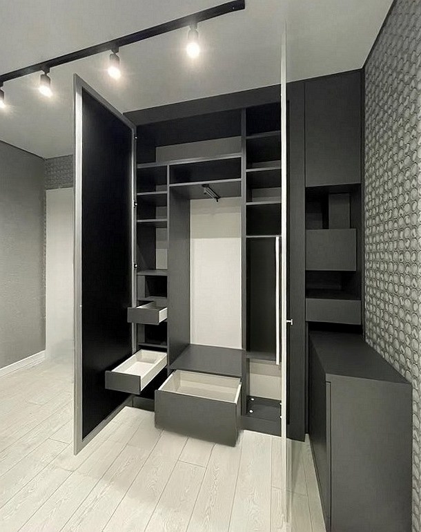 Большой шкаф с темным профилем и встроенной рабочей зоной «Модель 243»