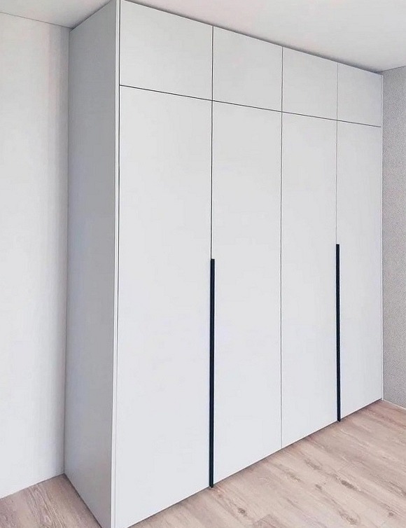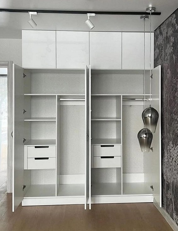 Белый 4х дверный шкаф под потолок в минимализме «Модель 330»