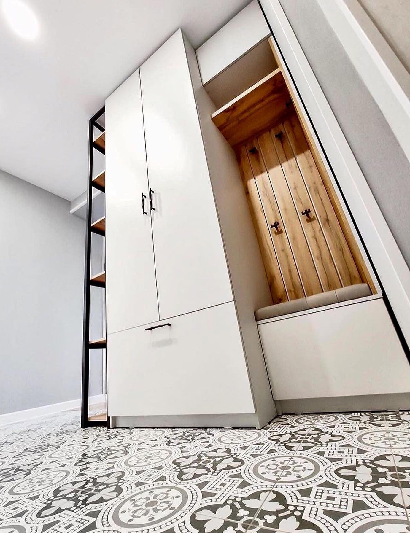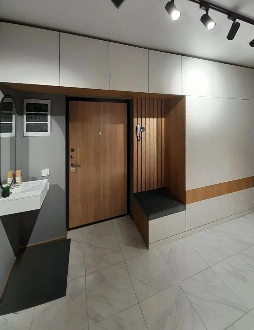 Встроенная прихожая в скандинавском стиле с зеркалом «Модель 332»