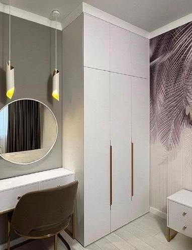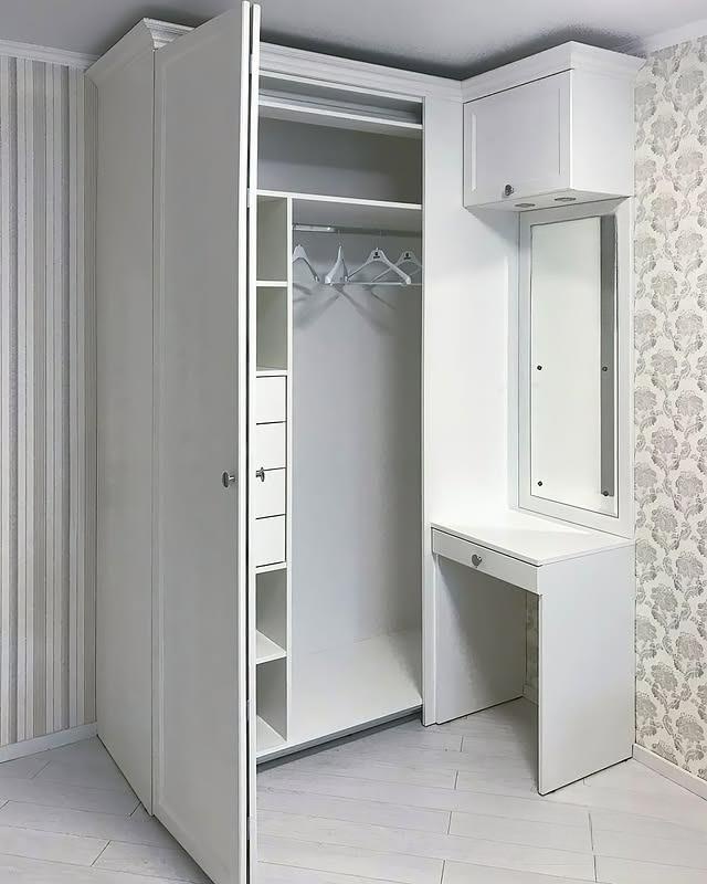 Угловой шкаф белого цвета с дверями-гармошка «Модель 334»