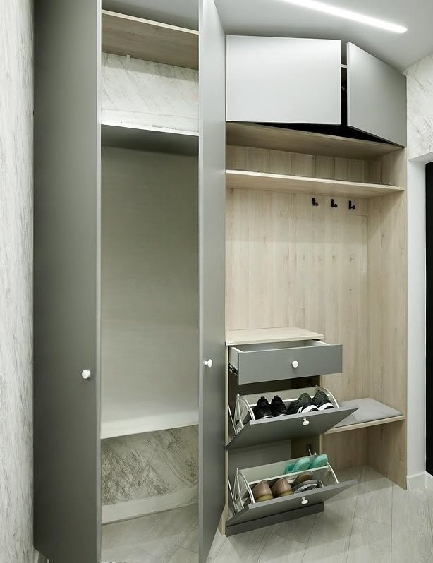 Встроенный серый шкаф с полкой для обуви «Модель 268»