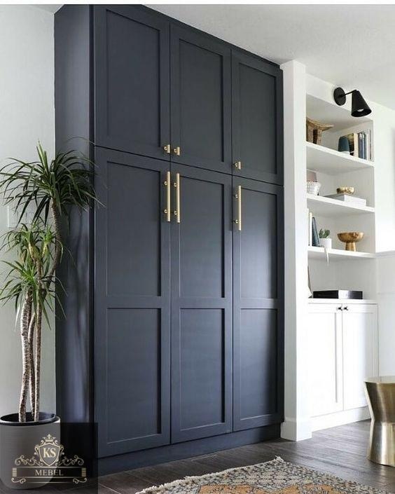 Встроенный синий шкаф в классическом стиле «Модель 308»