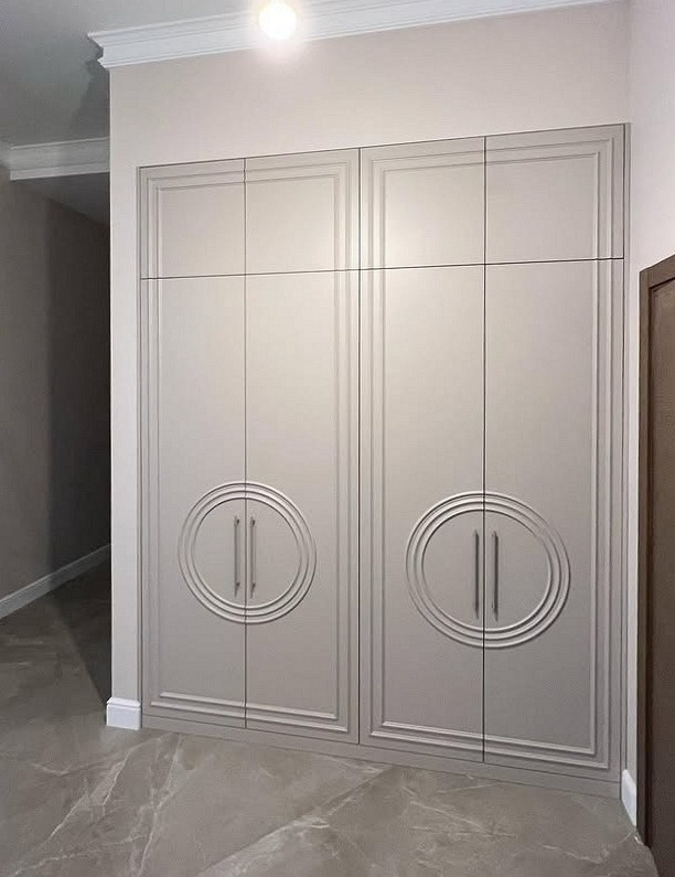 Встроенный распашной шкаф с фрезеровкой из МДФ «Модель 1»