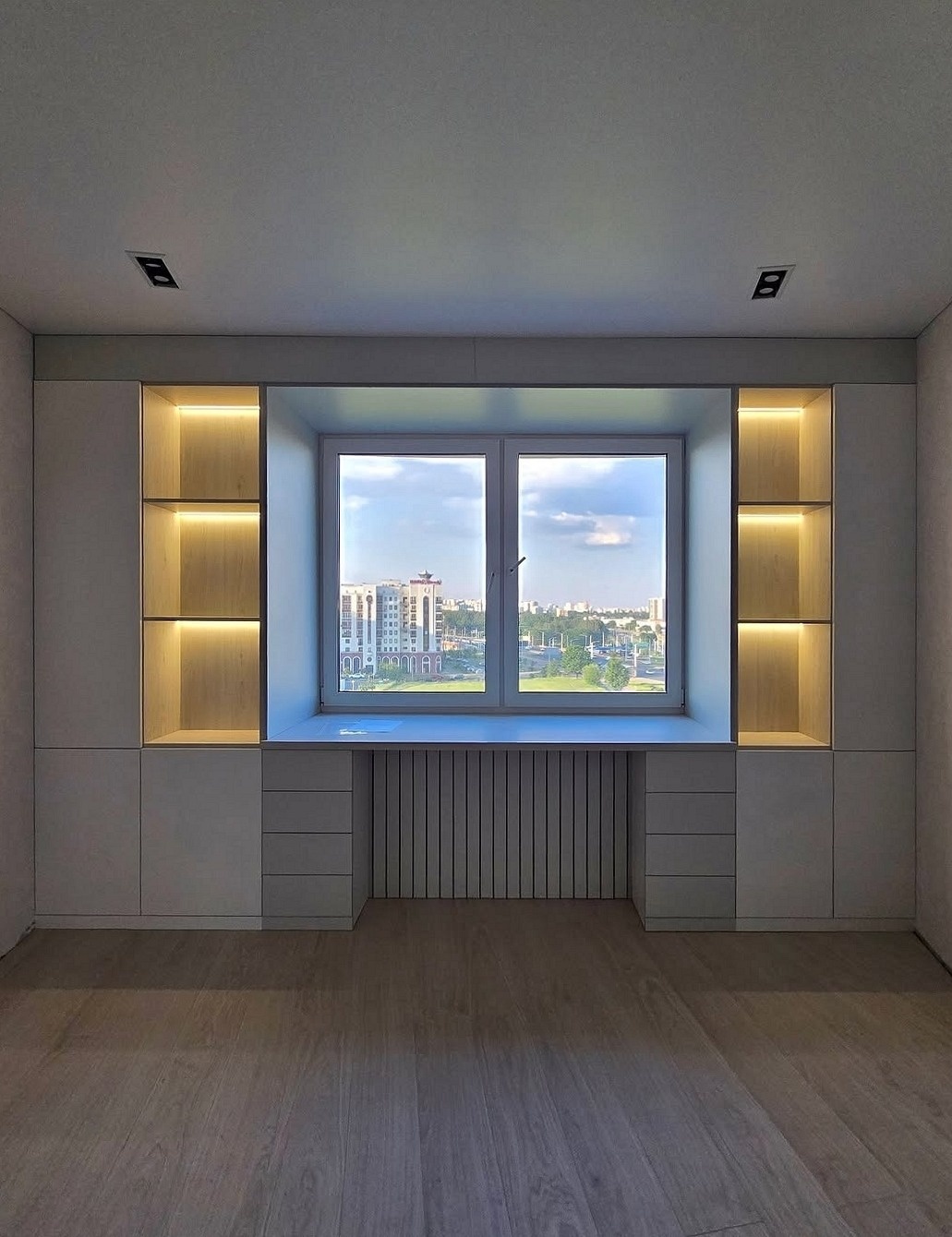 Встроенная прихожая в скандинавском стиле с зеркалом «Модель 332»