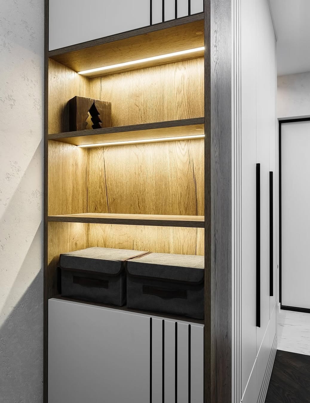 Встроенная прихожая в скандинавском стиле с зеркалом «Модель 332»