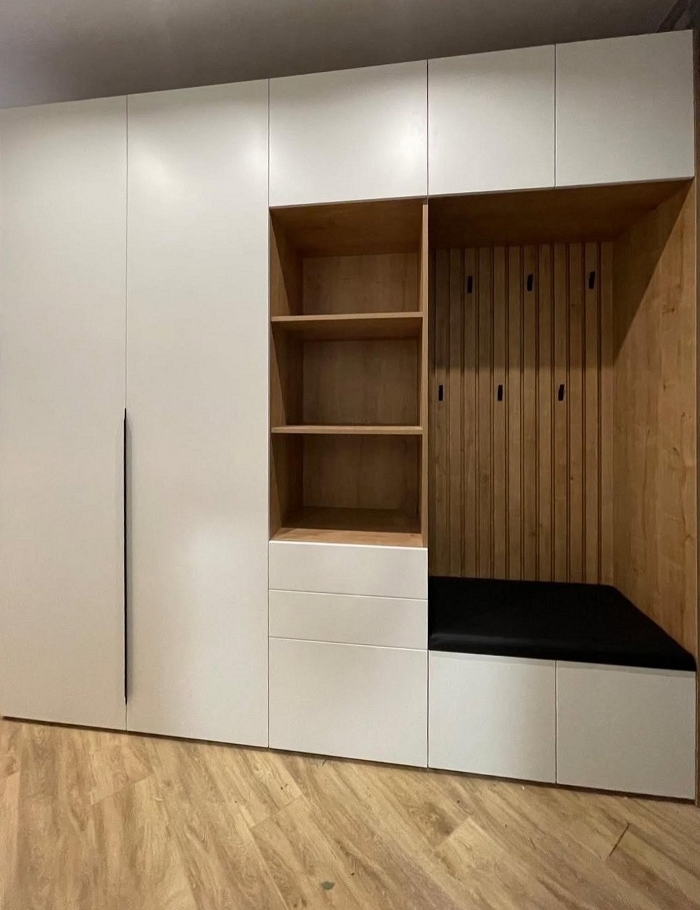 Распашной встроенный шкаф в прихожую в стиле сканди «Модель 389»