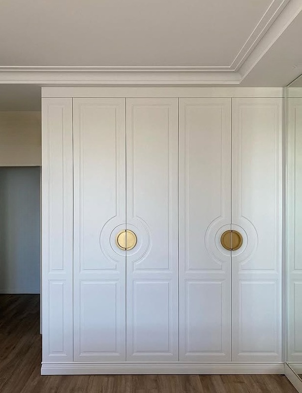 Бежевый шкаф с фрезеровкой в стиле неоклассика «Модель 77»